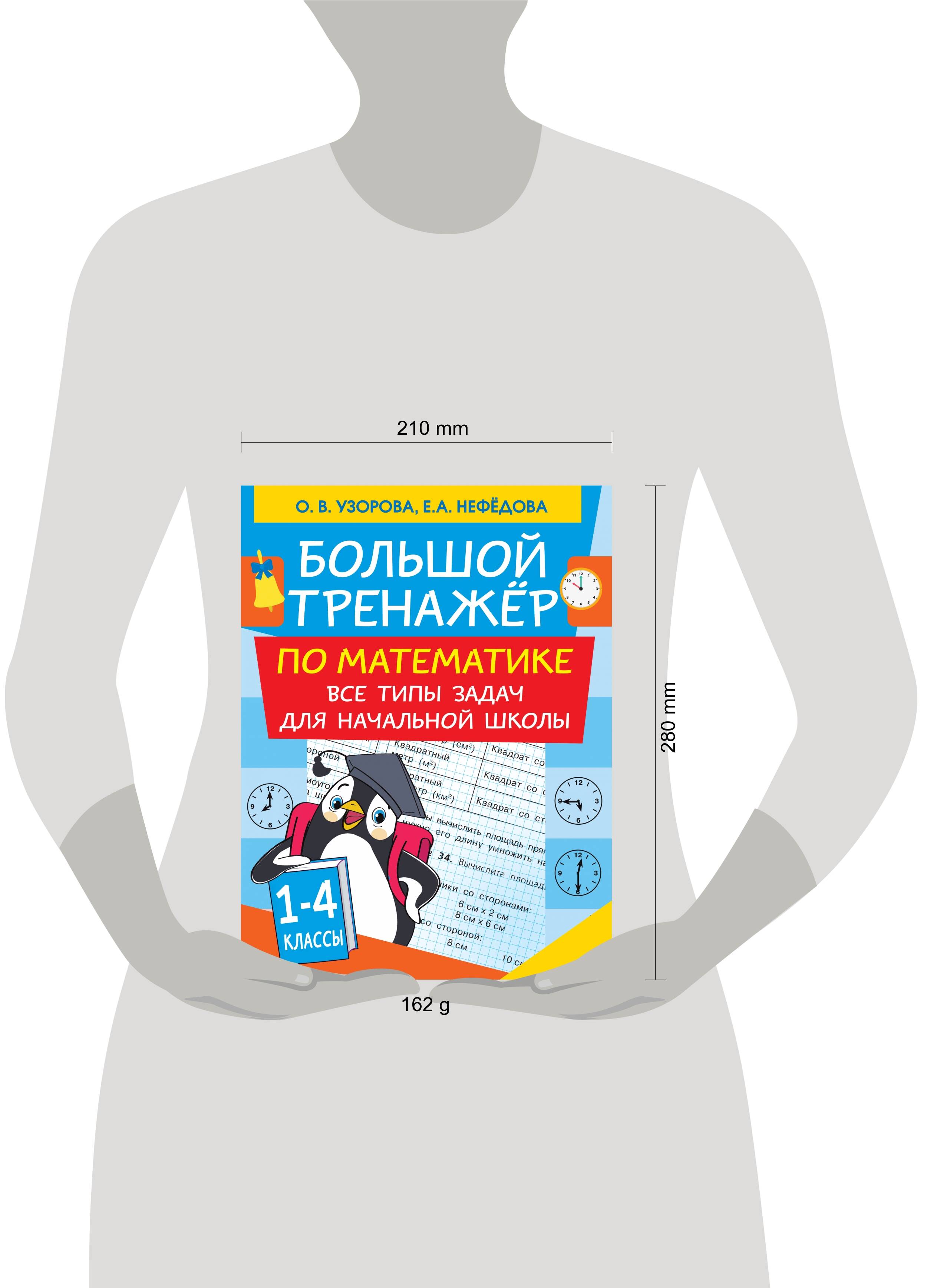 О чём эта книга «Большой тренажёр по математике. Все типы задач для начальной школы» - это сборник задач по математике для учеников младших классов. Занимаясь по книге, школьники закрепят знания, полученные в процессе обучения, отработают навык решения простых и составных задач, задач на нахождение суммы и остатка, задач на кратное сравнение, задач с величинами. Пособие можно использовать для работы дома и в классе по всем федеральным программам начальной школы. Кому эта книга будет интересна Сборник задач по математике для учащихся начальной школы. Каковы особенности этой книги • Все типы задач в одной книге. • Занятия по книге помогут ребёнку успешно подготовиться к контрольным и проверочным работам. • В разделе ответов можно узнать, как решается та или иная задача.| Издательство | Издательство "АСТ" |