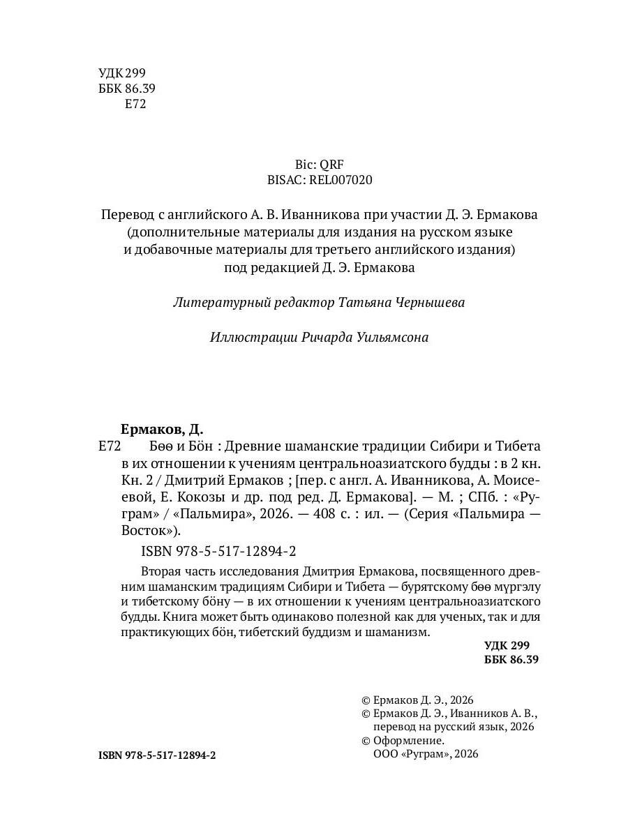 Вторая часть исследования Дмитрия Ермакова, посвященного древним шаманским традициям Сибири и Тибета - бурятскому боо мургэлу и тибетскому бoну - в их отношении к учениям центральноазиатского будды. Книга может быть одинаково полезной как для ученых, так и для практикующих бoн, тибетский буддизм и шаманизм.| Издательство | Т8 RUGRAM |