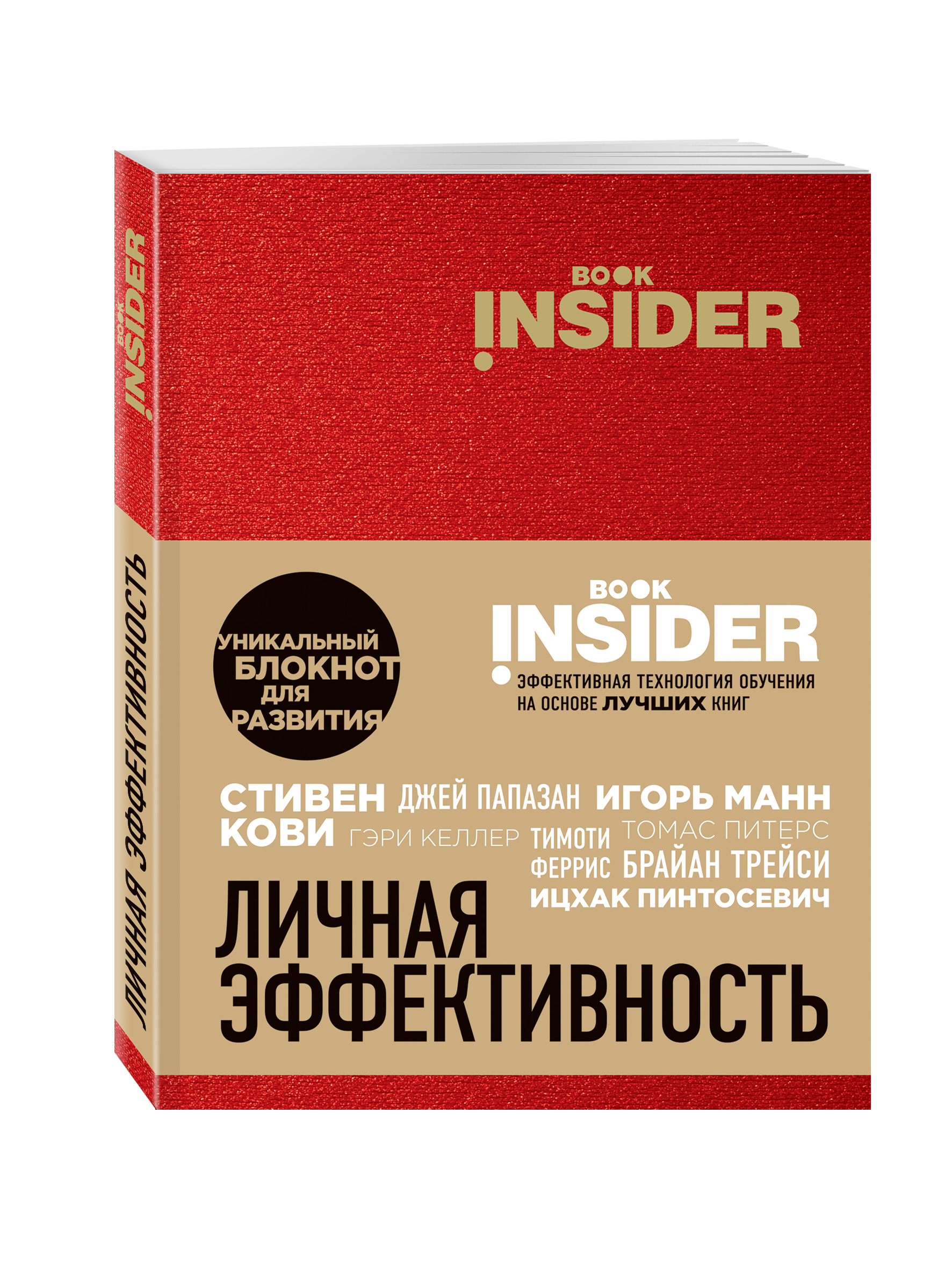 Блокноты для развития Book Insider - революция в самообразовании. В блокноте "Личная эффективность" есть список из семи лучших, проверенных временем бестселлеров по личной эффективности, которые нужно изучить; уникальная авторская методика сверхобучения "Три П" Ицхака Пинтосевича; страницы для заполнения по этой методике и страницы для творчества; тесты на проверку знаний; лайфхаки по теме от эксперта. Изучай книги, заполняй блокнот, и ты получишь диплом эксперта по теме "личная эффективность" от Isaac Pintosevich Systems и школы бизнеса "Синергия", а также сертификат на 5000 рублей для прохождения любой программы в школе бизнеса "Синергия". Подробности - внутри блокнота.| Издательство | ООО "Издательство "Эксмо" |