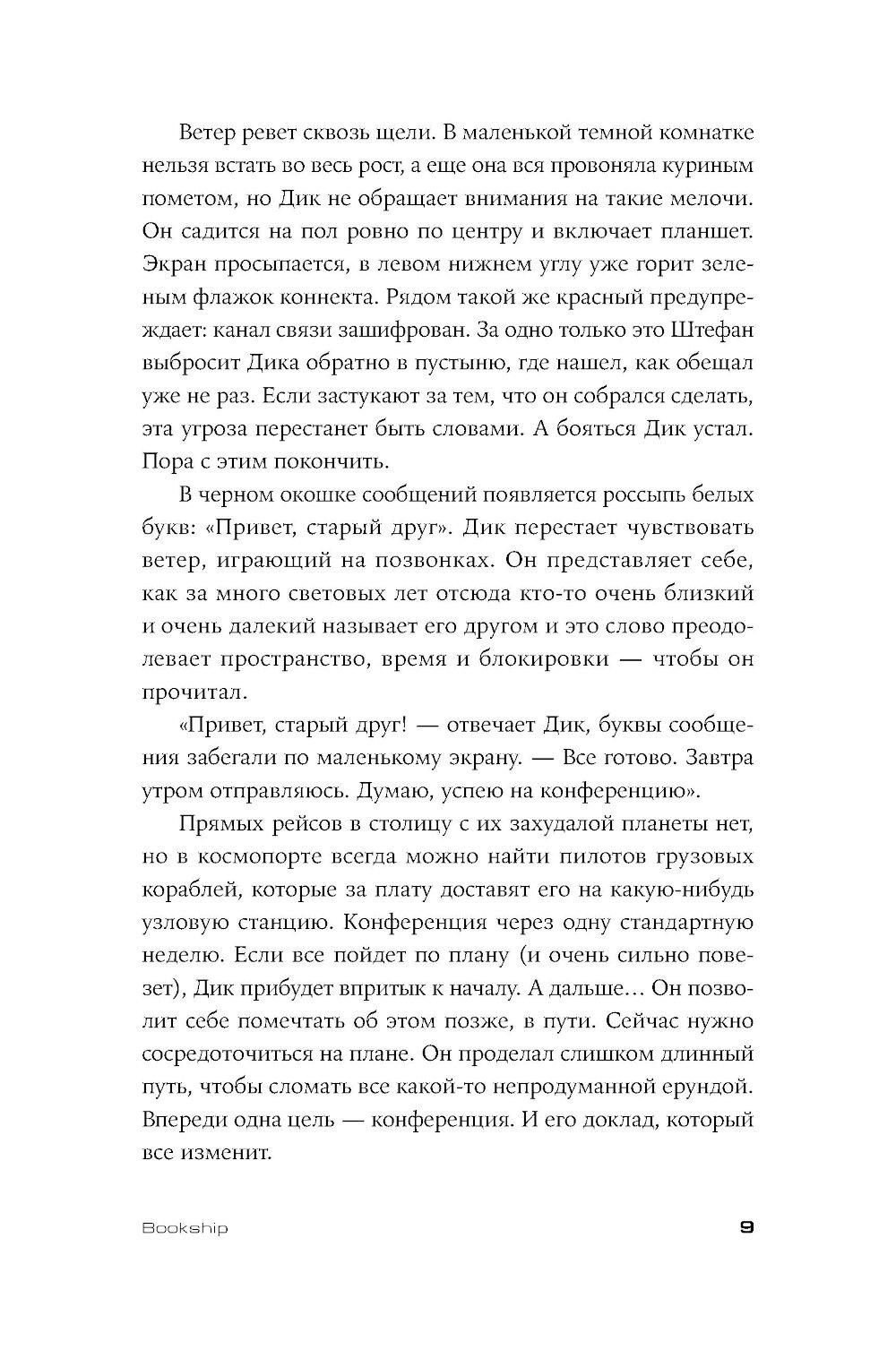 Bookship не просто космический корабль. Он несет на борту, возможно, последний во всей Вселенной оплот мысли и надежды. Правда, выясняется это не сразу. Поначалу команда этого ведра с болтами, укрепленного (почти) честным словом капитана и силой искусственной мысли управляющего компьютера, перевозит грузы и немного «запрещенки». А как иначе в мире, где распространение книг вне закона? «Bookship. Последний книжный магазин во Вселенной» - космический вестерн писателя и сценариста Марии Закрученко. Захватывающая сага для тех, кто соскучился по авантюрам в духе «Светлячка» и «Экспансии» и верит в силу печатного слова.| Издательство | Альпина нон-фикшн |