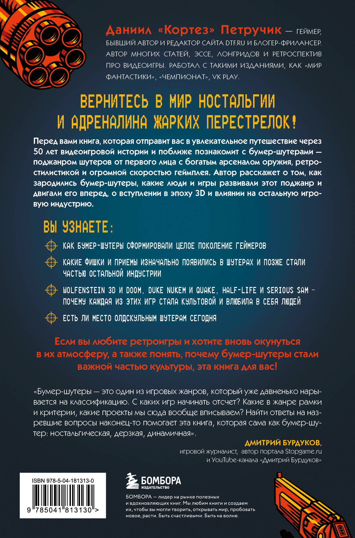 ВЕРНИТЕСЬ В МИР НОСТАЛЬГИИ И АДРЕНАЛИНА ЖАРКИХ ПЕРЕСТРЕЛОК! Перед вами книга, которая отправит вас в увлекательное путешествие через 50 лет видеоигровой истории и поближе познакомит с бумер-шутерами - поджанром шутеров от первого лица, огромный выбор оружия, ретростилистку и несколько других особенностей. Автор расскажет о том, как зародились бумер-шутеры, какие люди и игры развивали этот поджанр и двигали его вперед, о вступлении в эпоху 3D и влиянии на остальную игровую индустрию. Вы узнаете: • Как бумер-шутеры сформировали целое поколение геймеров. • Какие фишки и приемы изначально появились в шутерах и позже стали частью остальной индустрии. • Wolfenstein 3D и DOOM, Duke Nukem и Quake, Half-Life и Serious Sam - почему каждая из этих игр стала культовой и влюбила в себя людей. • Есть ли место олдскульным шутерам сегодня. Если вы любите ретро-игры и хотите вновь окунуться в их атмосферу, а также понять, почему бумер-шутеры стали важной частью культуры, эта книга для вас! Об авторе Даниил «Кортез» Петручик - геймер, бывший автор и редактор сайта DTF.ru и блогер-фрилансер. Автор многих статей, эссе, лонгридов и ретроспектив про видеоигры. Работал с такими изданиями, как «Мир Фантастики», «Чемпионат», VK Play. «Бумер-шутеры - это один из игровых жанров, который уже давненько нарывается на классификацию. С каких игр начинать отсчет? Какие в жанре рамки и критерии, какие проекты мы сюда вообще вписываем? Найти ответы на назревшие вопросы наконец-то помогает эта книга, которая сама как бумер-шутер: ностальгическая, дерзкая, динамичная». - Дмитрий Бурдуков, игровой журналист, автор портала Stopgame.Ru и YouTube-канала «Дмитрий Бурдуков»