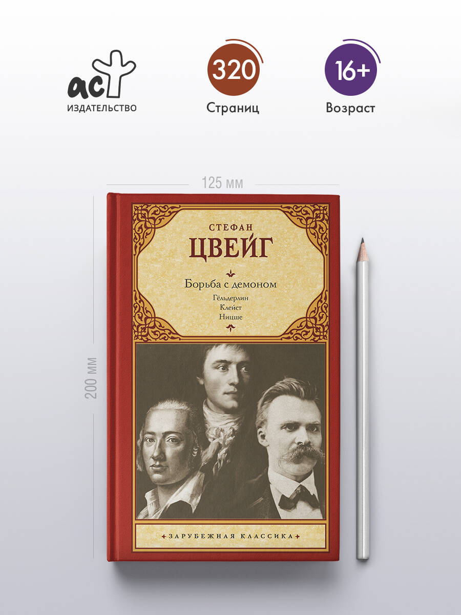 - Стефан Цвейг - известный австрийский писатель, один из наиболее ярких представителей направления «венского модерна», автор книг «Смятение чувств» и «Нетерпение сердца». - Цвейг прославился не только как мастер романтической новеллистики, но как один из родоначальников жанра художественной биографии. - «Борьба с демоном» - одна из самых ярких книг Цвейга, яркий портрет трех великих гениев и безумцев - Фридриха Ницше, Фридриха Гёльдерлина и Генриха фон Клейста. - Издание в узнаваемом оформлении серии «Зарубежная классика».| Издательство | Издательство "АСТ" |