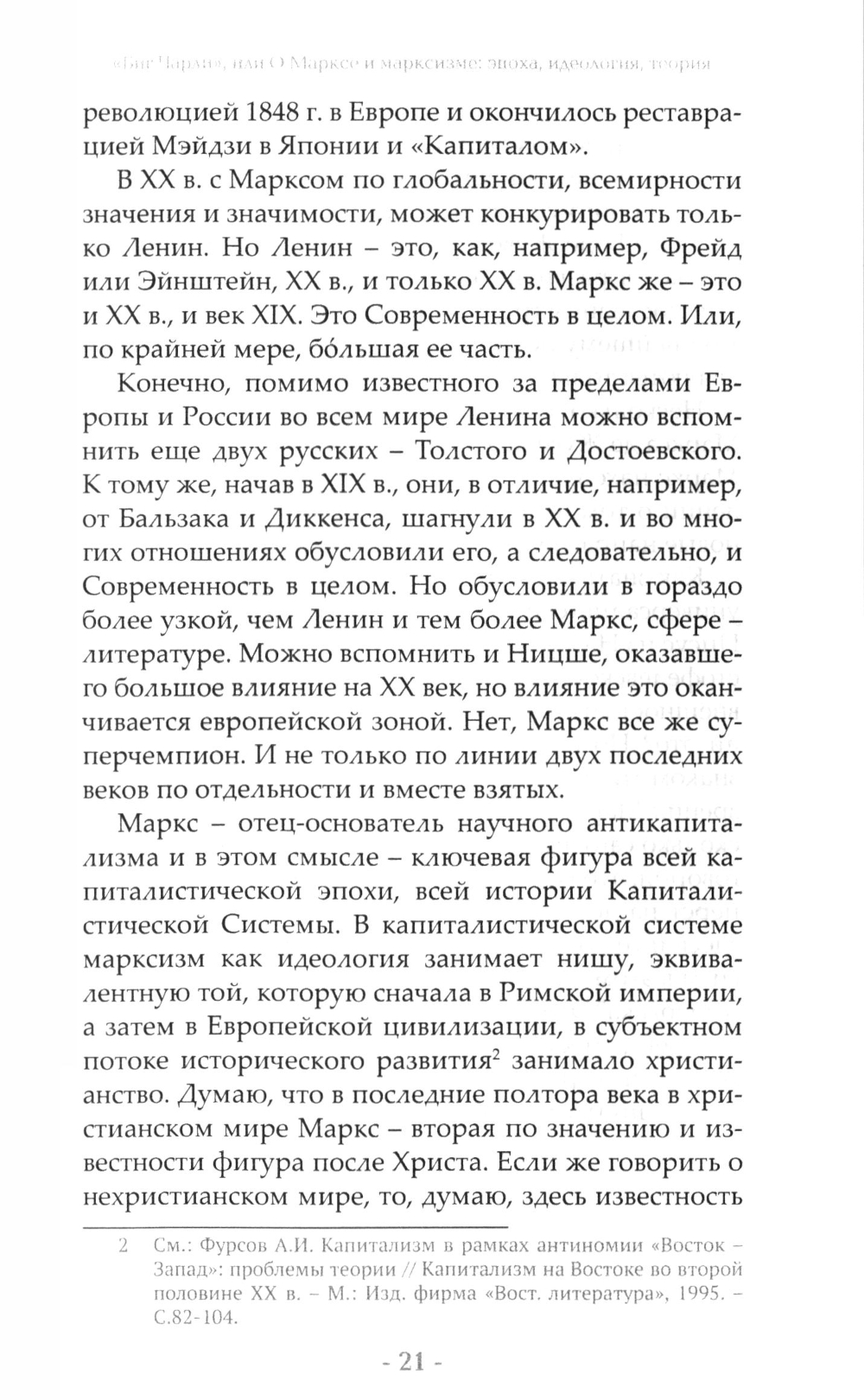 Столетие Великой Октябрьской социалистической революции не только заставляет нас оглянуться с интересом на «короткий» ХХ русский век (1917-1991), но и задуматься над тем, почему провалился великолепный социальный эксперимент по построению социализма в отдельно взятой стране - СССР. Был ли в корне неправ Маркс со своим пресловутым «Капиталом»? Или его задумка была верной, вот только подвели последователи-практики: Ленин, Троцкий, Сталин? А, может быть, коммунизм прошел отведенный ему Историей путь и скончался своею смертью - от внутренних противоречий? Или коммунистическое будущее человечества похоронили предатели, глупцы и маразматики в позднем советском руководстве? В новом издании книге кандидат исторических наук Андрей Фурсов дает ответы на эти вопросы. Ответы неутешительные, жесткие, честные, ставящие перед читателем новые вопросы: о будущем человечества и его, читателя, роли в свершающейся на наших глазах очередной пересдаче карт Истории.| Издательство | Книжный мир |