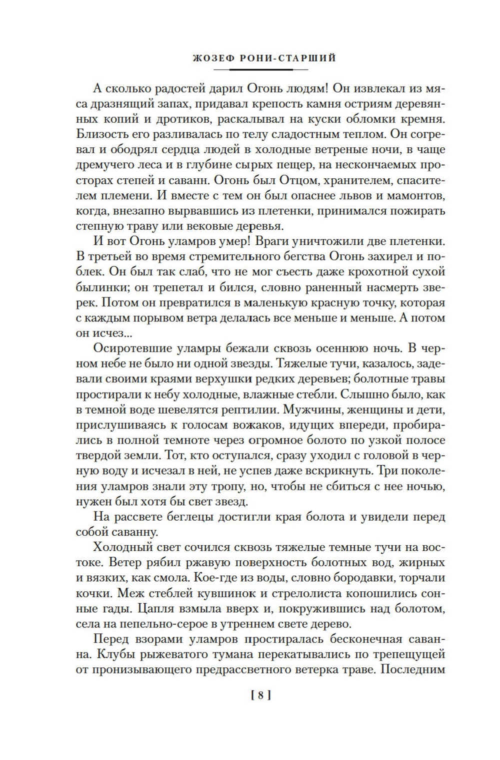 Жозеф Рони-Старший - известный французский писатель, прославившийся по всему миру приключенческими книгами о первобытной эпохе. Отважным героям его произведений противостоят грозные стихии природы, свирепые хищники, враждебные племена. Им приходится преодолевать большие расстояния, рисковать жизнью, вступая в неравный бой с врагами, и принимать решения, от которых зависят судьбы многих людей. Однако благородство, великодушие, сообразительность и любознательность помогают им справиться с трудностями и выйти победителями из самых безнадежных и рискованных ситуаций. В настоящее издание вошли пять произведений, составляющих цикл «Дикие времена»: «Борьба за огонь», «Пещерный лев», «Вамирэх», «Эйримах» и «Хелгвор с Синей Реки». Тексты сопровождаются иллюстрациями известного художника-графика Павла Парамонова.