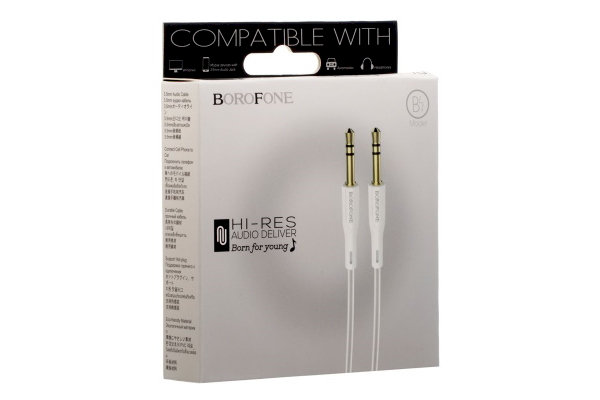 Borofone BL1 Премиум AUX провод 3.5 mm -> 3.5 mm 1m белый
