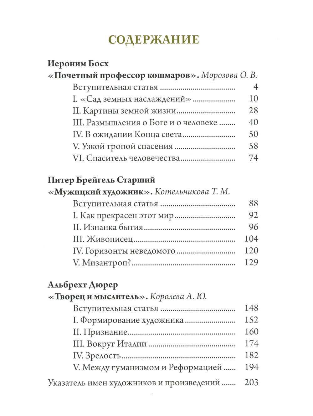 Книга рассказывает о жизни и творчестве трех ярчайших звезд эпохи Северного Возрождения - «почетного профессора кошмаров», предтечи сюрреализма Иеронима Босха, картины которого завораживают зрителя фантастическими образами; продолжателя босховской традиции, художника-философа Питера Брейгеля Старшего; главного художника всей немецкой живописи, творца и мыслителя, великого живописца и непревзойденного мастера гравюры Альбрехта Дюрера. Искусство трех гениев Северного Возрождения удивляет и поражает новаторством, особым миром художественных образов и символов, высочайшим живописным мастерством. Для широкого круга читателей.| Издательство | Просвещение-Союз |