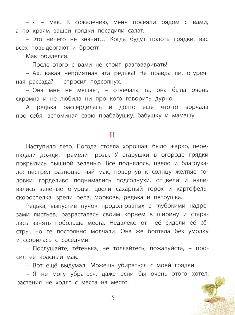 Герои этих мудрых сказок обитают в огороде, в саду, в лесу, в поле. Там они рождаются, растут, радуются жизни, спорят и ссорятся, стареют, умирают и возрождаются вновь… В сборник включены поэтичные сказки русских и зарубежных писателей о растениях. Книга украшена волшебными иллюстрациями Галины Егоренковой. Для младшего и среднего школьного возраста.