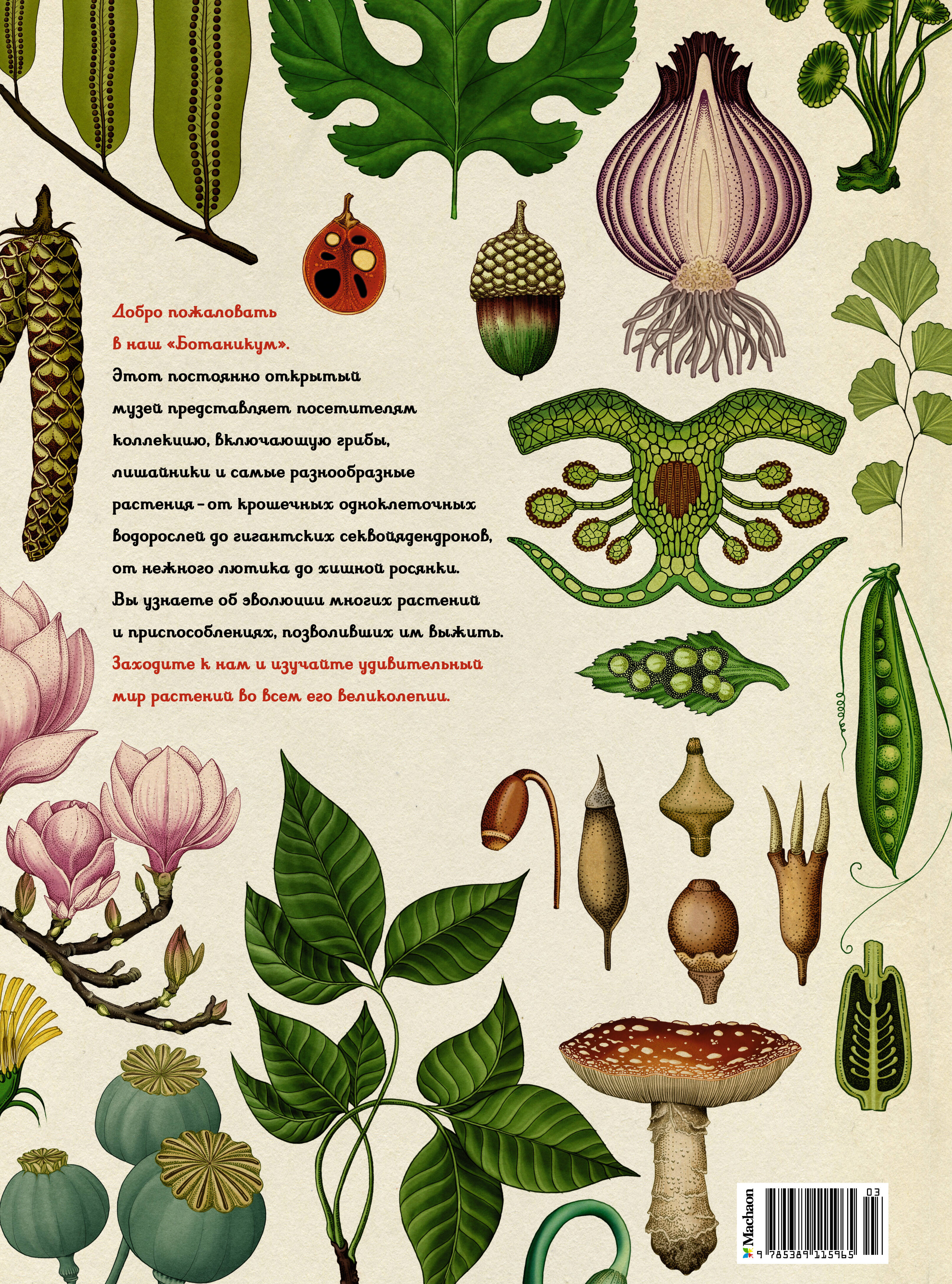 Добро пожаловать в наш "Ботаникум". Этот постоянно открытый музей представляет посетителям коллекцию, включающую грибы, лишайники и самые разнообразные растения - от крошечных одноклеточных водорослей до гигантских секвойядендронов, от нежного лютика до хищной росянки. Вы узнаете об эволюции многих растений и приспособлениях, позволивших им выжить. Заходите к нам и изучайте удивительный мир растений во всем его великолепии.| Издательство | Азбука-Аттикус Издат.группа ООО |