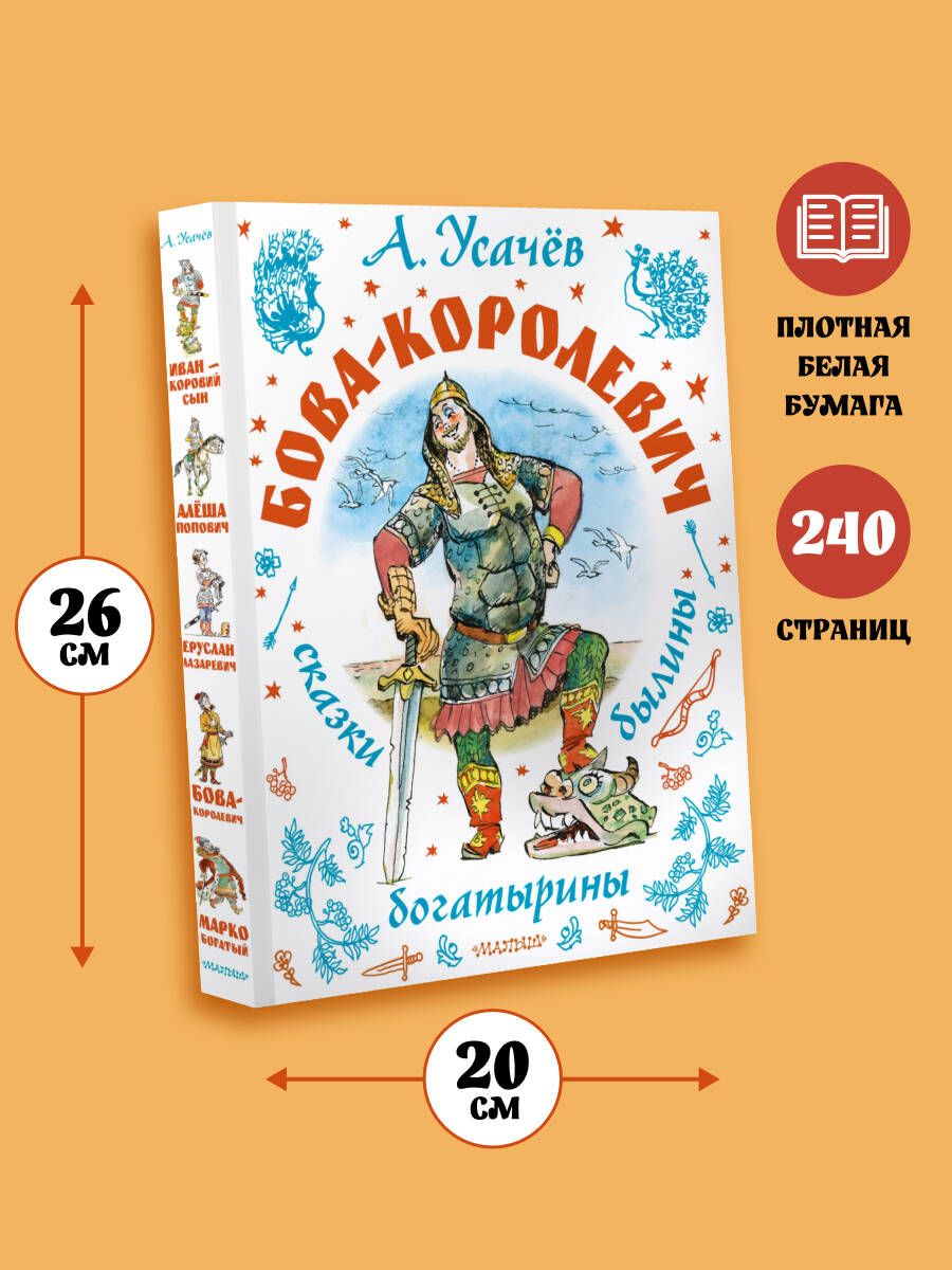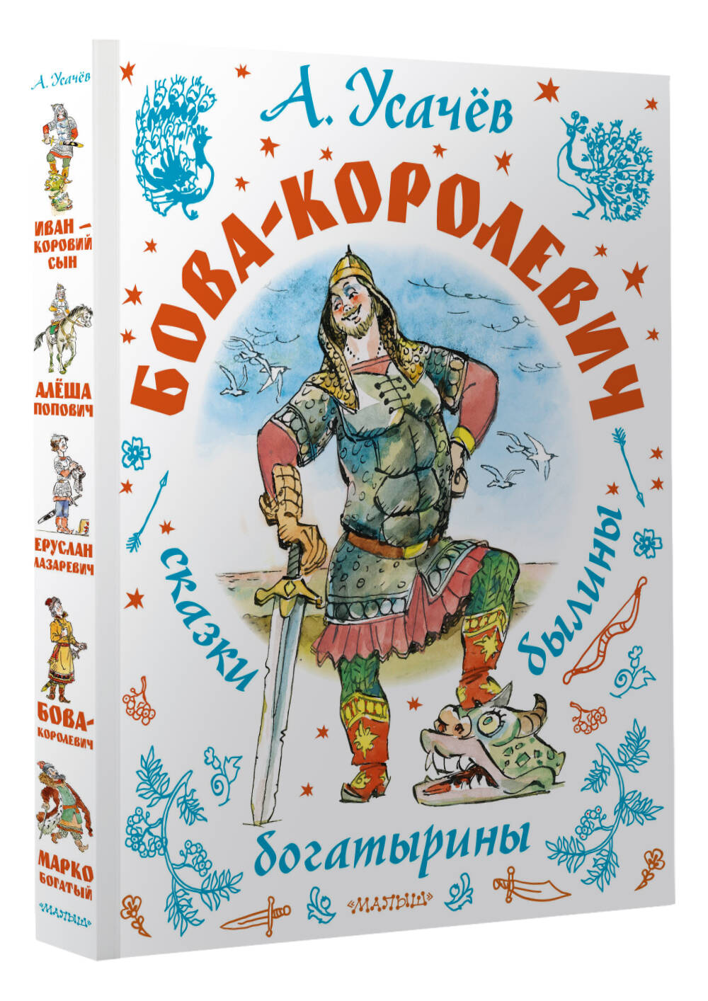 Богата земля Русская богатырями! Надёжно стоят они на защите нашей Отчизны от разных чудищ и врагов. В давние времена Русь-матушку тоже защищали могучие богатыри, о которых слагали былины, сказания о них передавали из уст в уста. В этой поистине богатырской книге Андрей Усачёв пересказал сказки и былины о добрых молодцах, отважных витязях, сильных духом и крепких верой защитниках Руси. Алёша Попович, Бова-королевич, Еруслан Лазаревич и другие герои не боятся идти в бой ради своей семьи, веры, друзей и Родины. Нам есть с кого брать пример. Любовь к Отчизне, сила духа, смелость и находчивость каждого могут сделать богатырём и настоящим героем!