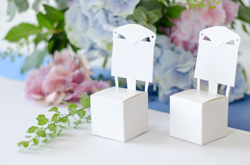 Boxes Chair made of white paper with a place card, ideal for guest gifts, size after assembling 5x5x5 centimeters (with a backrest 13.5 centimeters).