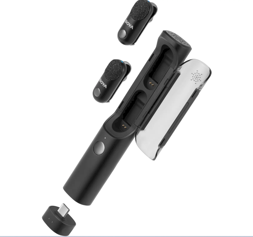 Boya Magic-02 - это трансформируемая беспроводная микрофонная система, совместимая с устройствами USB-C, Lightning и 3,5 мм. В комплект входят два передатчика, три приёмника (USB-C, Lightning, 3,5 мм TRS), зарядный футляр, ветрозащиты и необходимые кабели. Устройство обеспечивает студийное качество записи 48 кГц/24 бита и широкий частотный диапазон 20 Гц-20 кГц.