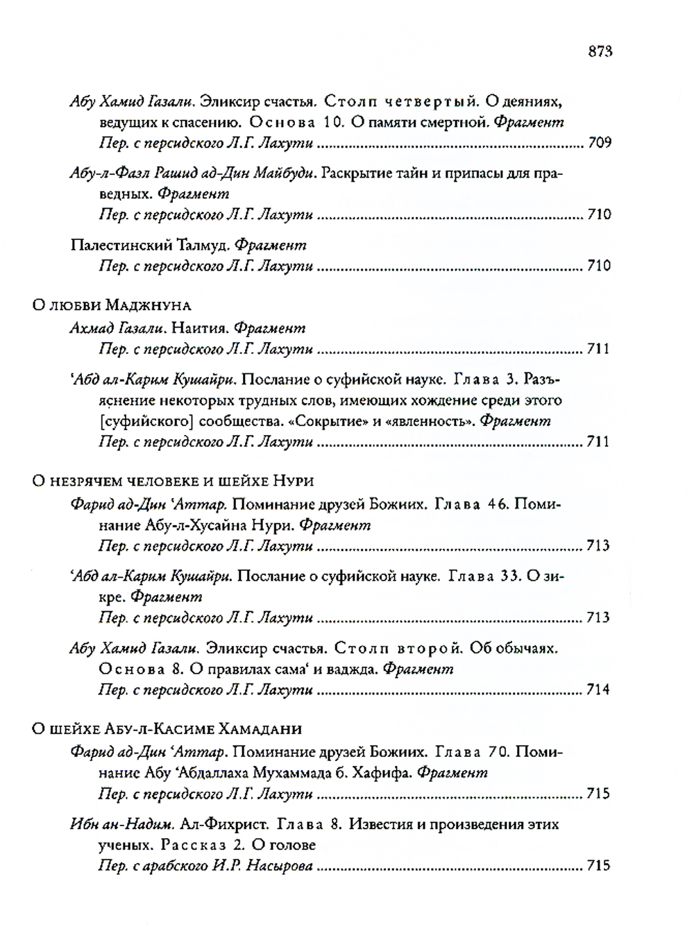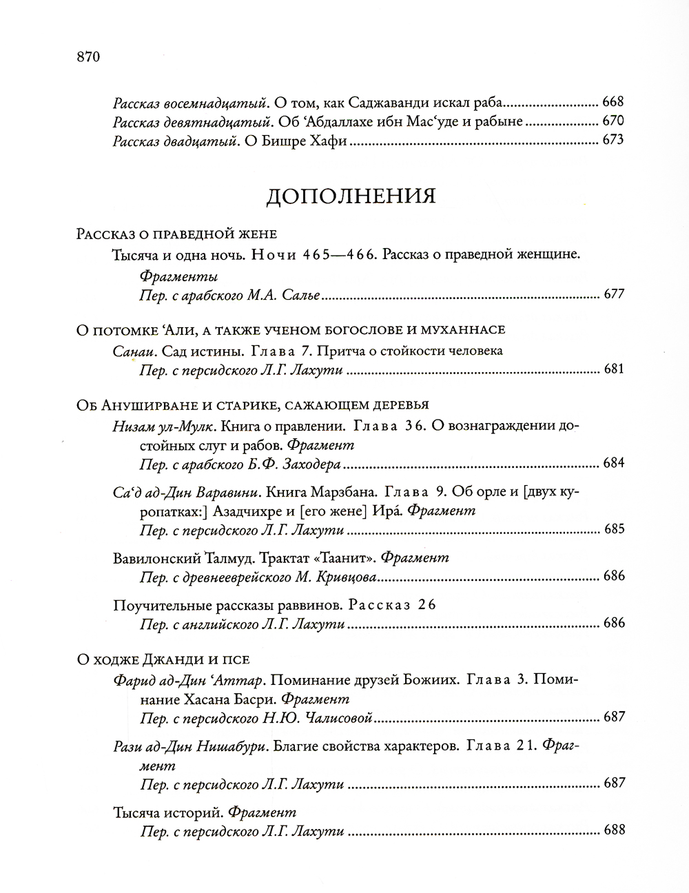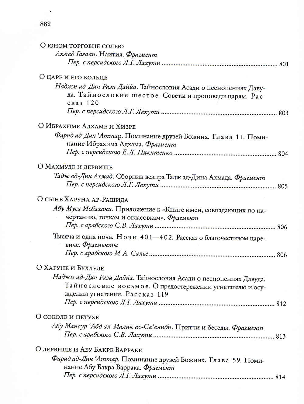 По замыслу автора, рассказы должны быть интересны и "простому", неискушенному, читателю, и "избранному", постигающему внутренние смыслы, скрытые за поверхностью слов и явлений. Отец в поэме 'Аттара ведет сыновей - а вместе с ними и читателей - дорогой смыслов. По мере этого восхождения человек изменяется: он начинает понимать, что вещи, которые казались ему простыми, таят в себе загадку. Загадка есть уже и в самом названии "Илахи-наме": "Божественная книга" - наподобие "Божественной Комедии" Данте, "Книга, посвященная Божеству" или "Книга воззвания к Богу!" - все эти понимания допускает персидский язык. Рассказы-притчи 'Аттара открывают широкий простор для истолкования. Прочитываемые в суфийском ключе, они позволяют увидеть в занимательных сюжетах неистощимого рассказчика описание духовного пути мистика. Автор как бы задает читателю - а быть может, и самому себе - судьбоносные вопросы, ответ на которые не так прост. Сюжеты для своих историй 'Аттар черпал отовсюду - из повседневной жизни, из рассказов покупателей и пациентов, приходивших в его...