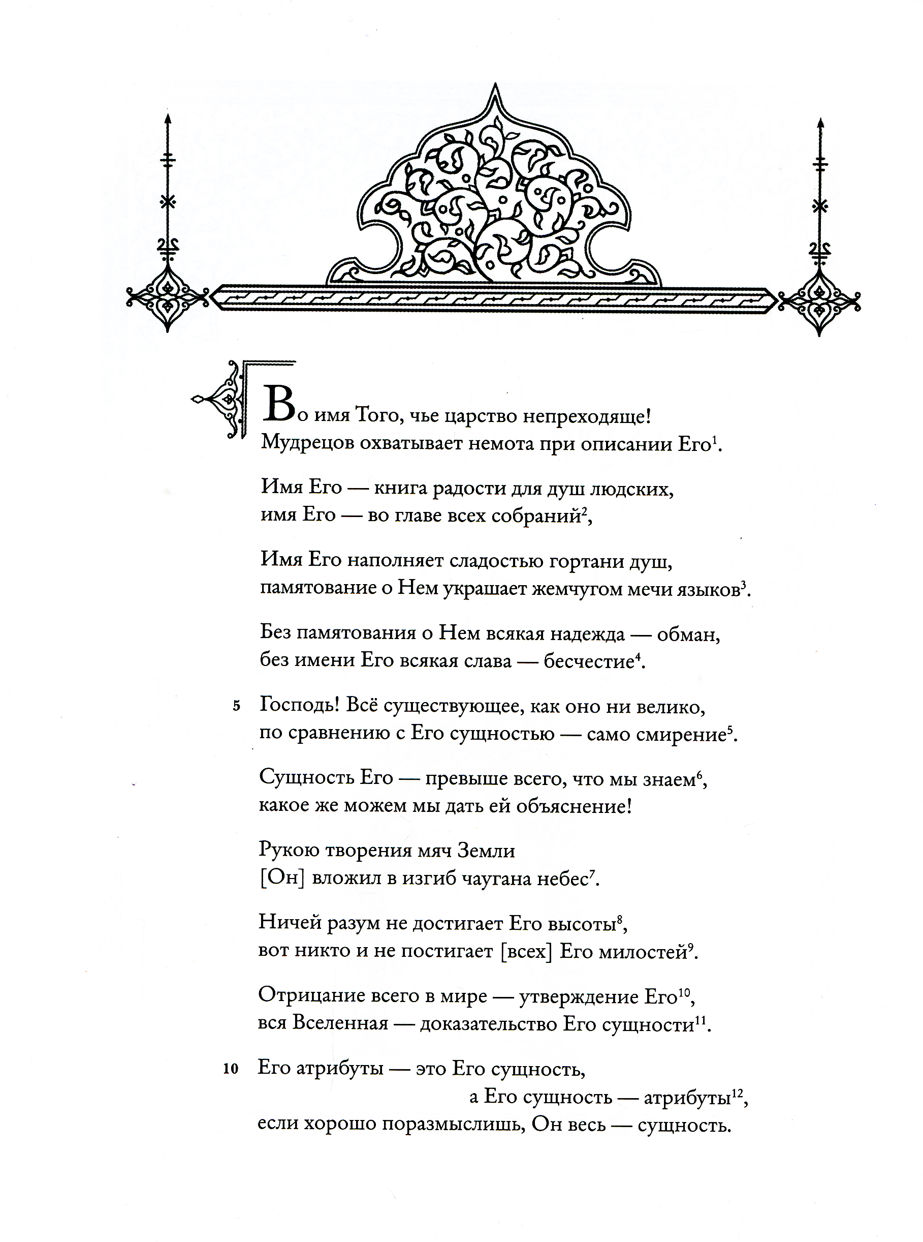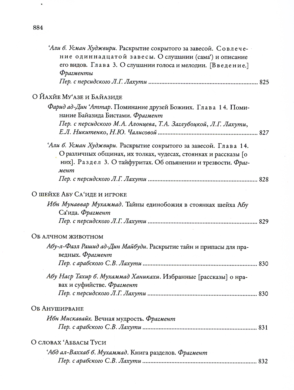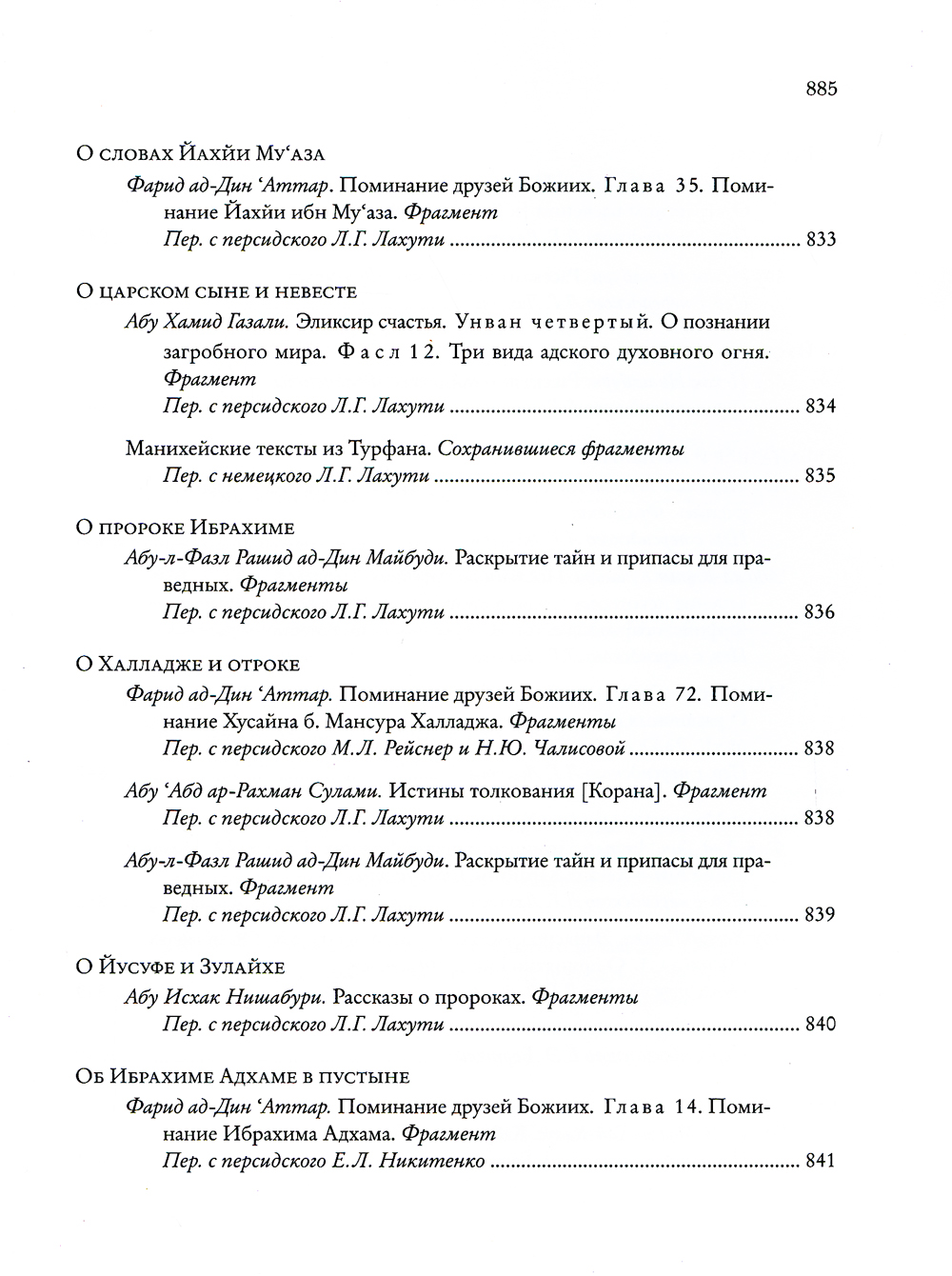 «Божественная книга» («Илахи-наме»), впервые публикуемая на русском языке, - несомненный шедевр, подлинная жемчужина в сокровищнице мировой литературы. Ее автор - персидский поэт-мистик, рассказчик и философ XII-XIII веков Фарид ад-Дин по прозванию 'Аттар («аптекарь», «парфюмер»). Он составлял целебные благовония и лечил ими людей, а благоухание его стихов, как говорили другие поэты, пронизало всю последующую персидскую поэзию. Его творчество оказало мощное и продолжительное влияние на развитие литературы в Иране и далеко за его пределами. Так, знаменитый Джалал ад-Дин Руми, поэт XIII века, называл 'Аттара своим вдохновителем, а себя - его «прислужником в искусстве слова». В центре внимания поэта - Бог, мир и человек в их взаимоотношениях. С читателем он говорит не языком поучений, но посредством искусно выстроенных рассказов. ...У одного мудрого отца было шесть сыновей. Молодые, благородные, прекрасно воспитанные и образованные, они были полны юношеских надежд и мечтаний, понятных любому человеку во все времена: любовь, способность достигать своих целей чудесным образом, видеть скрытое, знать и понимать все тайны мироздания, стать благодетелем человечества, научившись обращать «низкие» вещества в драгоценные. 'Аттар предлагает нам свое осмысление этих желаний: он говорит об их связи со свойствами души человека. Сыновья открываются отцу в своих желаниях, а тот в ответ начинает рассказывать им многочисленные увлекательные истории. Герои этих историй разнообразны: это исторические и литературные персонажи, знаменитые цари и безымянные старушки, купцы, прекрасные женщины и не менее прекрасные юноши, святые подвижники, воины, пророки, мусульмане, христиане, зороастрийцы, ангелы, пророки, небесные светила, собаки, кошки, муравьи и неодушевленные предметы. По замыслу автора, рассказы должны быть интересны и «простому», неискушенному, читателю, и «избранному», постигающему внутренние смыслы, скрытые за поверхностью слов и явлений. Отец в поэме 'Аттара ведет сыновей - а вместе с ними и читателей - дорогой смыслов. По мере этого восхождения человек изменяется: он начинает понимать, что вещи, которые казались ему простыми, таят в себе загадку. Загадка есть уже и в самом названии «Илахи-наме»: «Божественная книга» - наподобие «Божественной Комедии» Данте, «Книга, посвященная Божеству» или «Книга воззвания к Богу!» - все эти понимания допускает персидский язык. Рассказы-притчи 'Аттара открывают широкий простор для истолкования. Прочитываемые в суфийском ключе, они позволяют увидеть в занимательных сюжетах неистощимого рассказчика описание духовного пути мистика. Автор как бы задает читателю - а быть может, и самому себе - судьбоносные вопросы, ответ на которые не так прост. Сюжеты для своих историй 'Аттар черпал отовсюду - из повседневной жизни, из рассказов покупателей и пациентов, приходивших в его аптечную лавку, из историй о святых людях, которыми он восхищался еще в детстве, из множества книг, устных преданий и сказок. В разделе «Дополнения» собраны источники рассказов, которые удалось обнаружить. Это дает возможность представить круг чтения автора и увидеть, как преломляются в его творчестве известные сюжеты. Научный аппарат настоящего издания включает обстоятельную статью и фундаментальные комментарии, призванные помочь читателю прео