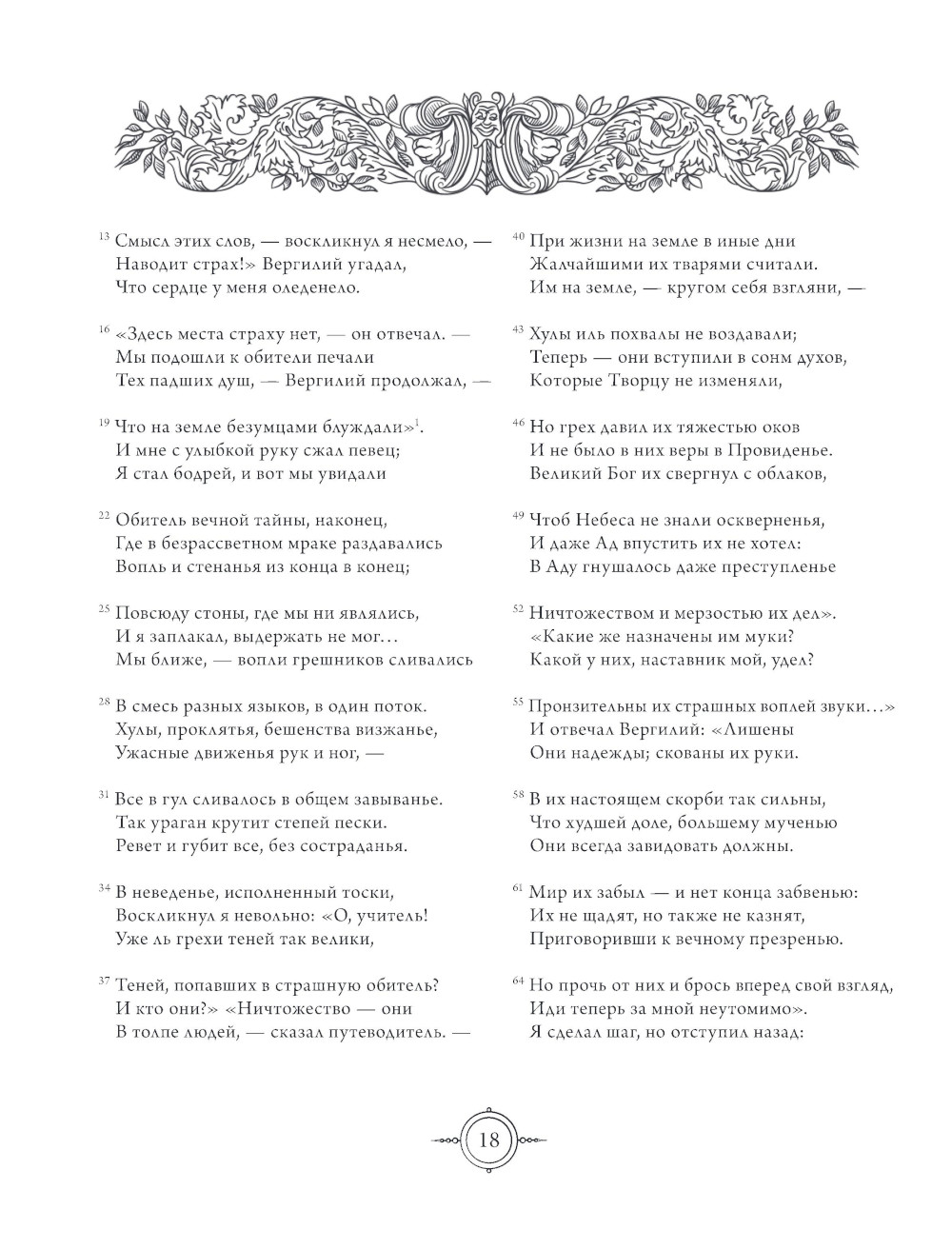 «Божественная комедия» - грандиозный литературный памятник итальянского поэта Данте Алигьери, уверенно входящий в 100 главных книг всех времен. Уникальное подарочное издание с объемным тиснением, закрашенным обрезом и бандеролью-закладкой - настоящий арт-объект, который доставит эстетическое удовольствие и станет жемчужиной вашей книжной коллекции. Великолепный классический перевод Дмитрия Минаева передает терцинный строй оригинального текста, а легендарные гравюры Гюстава Доре позволяют визуализировать самые знаковые места хрестоматийного сюжета и оценить сценический гений Данте в построении мизансцен и смене гигантских декораций. Описывая свою эпическую одиссею по многоэтажному загробному миру с наставником Вергилием, Данте создает широкое культурное полотно, суммирующее средневековые представления об истории и ее выдающихся фигурах, религии, философии, политике и науке. Однако ценность поэмы не исчерпывается историческим интересом. Образы Данте крепко вплетены в ткань общемировой культуры - к ним обращались писатели от Александра Пушкина до Дэна Брауна, великие художники и композиторы, титулованные режиссеры. Над загадками и темными местами поэмы бьются ученые и конспирологи, как над полотнами Босха и Да Винчи, и их азарт можно понять - недавно выяснилось, что модный термин «трансгуманизм» уходит этимологическими корнями в… «Божественную комедию». Данте закрепил классическую иконографию Люцифера, подробно описал адский бестиарий и с дотошностью кабинетного ученого создал настоящую периодическую систему пороков, попутно расквитавшись с оппонентами. Однако его герой отнюдь не циник - во время загробного путешествия он переживает сильнейшие эмоции: боится диких зверей, немеет от ужаса при виде немыслимых страданий грешников в аду, сочувствует знакомым и грешникам поневоле, цепляется за отеческую фигуру Вергилия, замирает в восторге. Впечатляющий психологизм и драматизм повествования (за три столетия до рождения Шекспира!) держат в напряжении до последнего стиха.| Издательство | Эксмо |