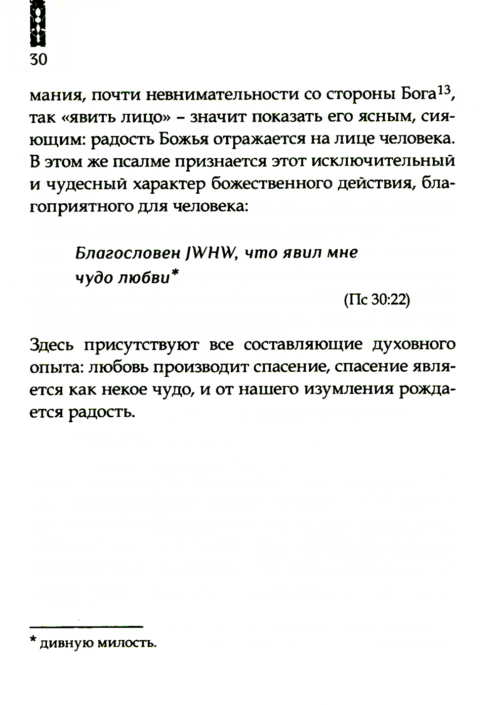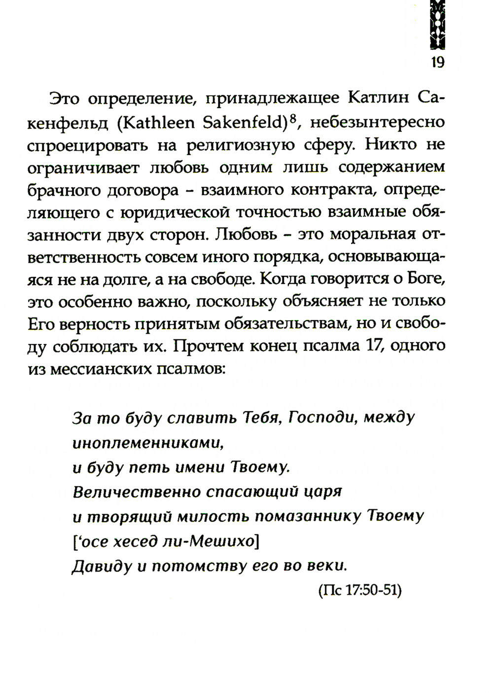 Любовь Божья - одна из самых великих тем Библии. В общей сложности слово хесед («любовь») встречается в Ветхом Завете 245 раз, из них 127 раз - в Псалтыри. Именно в этой книге, являющейся сборником молитв, многие из которых обращены к Царю-Мессии, тема Божьей любви становится постоянной, приобретает богословскую глубину. Автор, известный библеист и комментатор книг Ветхого и Нового Заветов, рассматривает каждое из наиболее значительных появлений термина хесед в Псалтыри, считая, что через чтение в строго определенной последовательности всех давидовых псалмов в нас реализуется подлинный мессианский опыт, опыт следования за Мессией.| Издательство | Изд. ББИ |