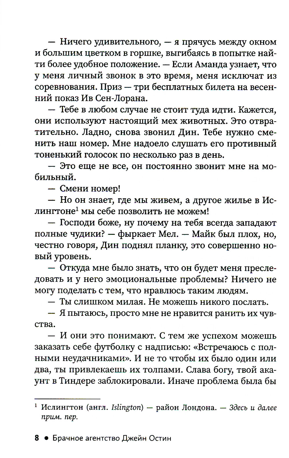 Софи Джонсон - молодая, умная и привлекательная. Кажется, у нее есть все. Но на самом деле она ненавидит свою работу, устала от контроля своей матери и совершенно не умеет ходить на свидания. Неожиданно она узнает о Брачном агентстве Джейн Остин - эксклюзивном клубе для женщин, которые хотят встретиться с настоящими джентльменами, - и считает, что наконец-то ей улыбнулась удача. Но так ли это? Эта книга для тех, кто когда-либо мечтал о романтике и настоящей любви и задавался вопросом, существует ли она на самом деле.| Издательство | Феникс |
