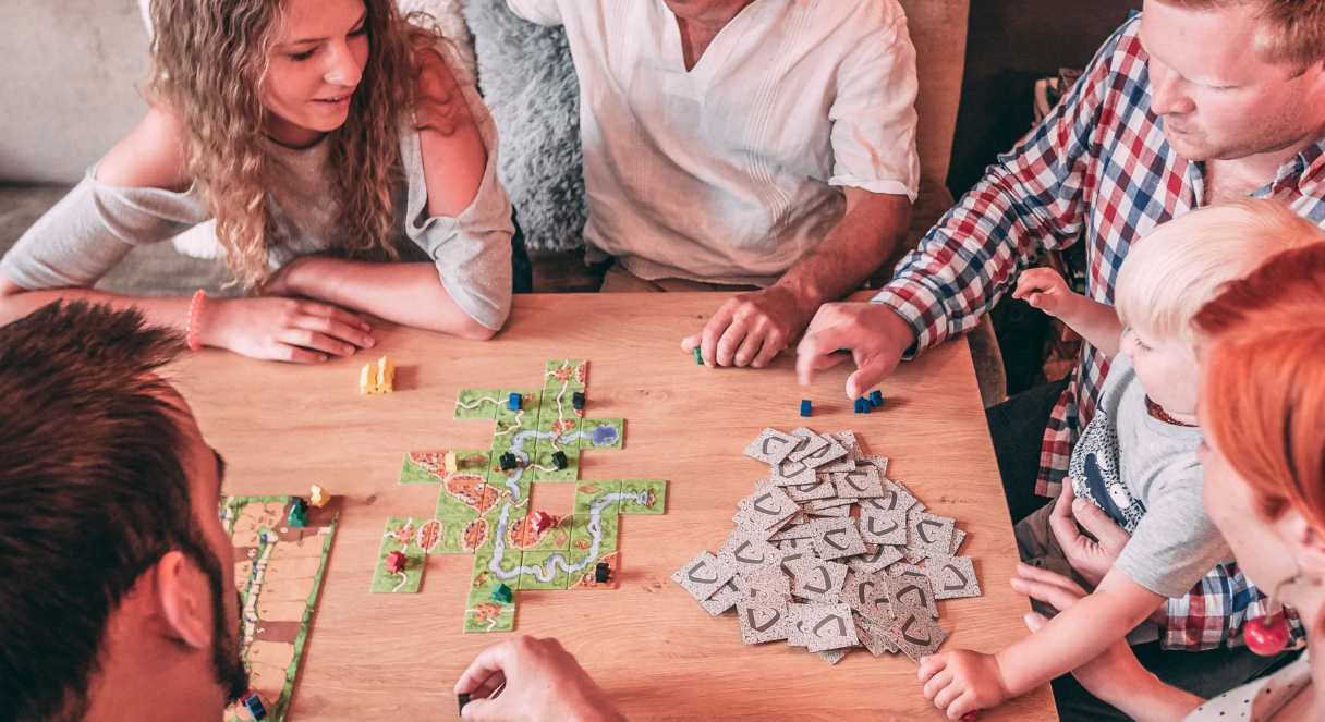 Каркассон - это игра, в которой игроки перетаскивают плитки, изображающие элементы южнофранцузского пейзажа. На поле может быть изображен город, дорога, монастырь, поле или сочетание нескольких элементов. Квадрат необходимо добавить к уже разложенному, чтобы город соединялся с городом, дорога с дорогой и так далее (прямо как пазл). Идеально подходит для семей и взрослых, которые ищут игру с простыми правилами, но сложной стратегией.