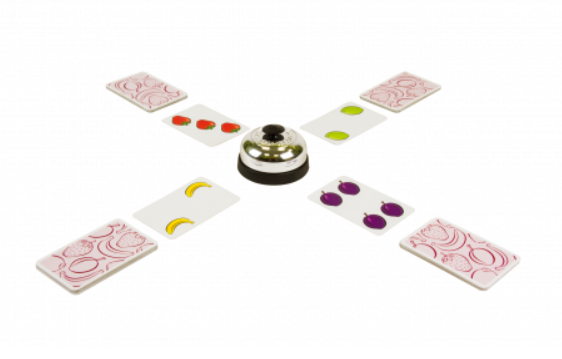 В наборе игры 56 карточек, на которых изображены разные фрукты (4 вида) с номерами от 1 до 5, а также металлический колокольчик. Карты раздаются поровну каждому игроку и кладутся перед каждым игроком лицевой стороной вниз. Игроки открывают по одной карте так, чтобы она была видна остальным в первую очередь. Таким образом, когда несколько видов фруктов появляются в разном количестве, игроки внимательно подсчитывают, нет ли на столе 5 фруктов одного вида. Когда это происходит, тот, кто первым позвонит в колокольчик, становится победителем раунда и получает открытые карты себе. Игрок, у которого заканчиваются стеки, выходит из игры, но игра заканчивается дуэлью между двумя наиболее опытными игроками. Halli Galli - хороший способ научить детей основам счета.