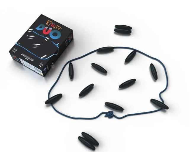 Kluster Duo - магнитная игра‑ловушка для 1-2 игроков (можно комбинировать несколько комплектов для большего числа игроков). На столе отмечена область (обычно верёвкой или линией), и по очереди игроки размещают свои магниты. Если магниты притягиваются и образуют кластер - его забирает игрок, и ход переходит к другому. Цель - первым избавиться от всех своих магнитов. Игра сочетает ловкость, стратегию и эффект неожиданности.
