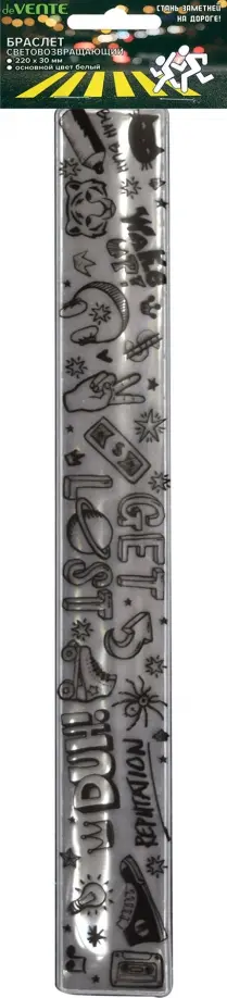 Браслет световозвращающий "deVENTE. Tattoo" 220x30 мм, белый с принтом, в пластиковом пакете с подвесом