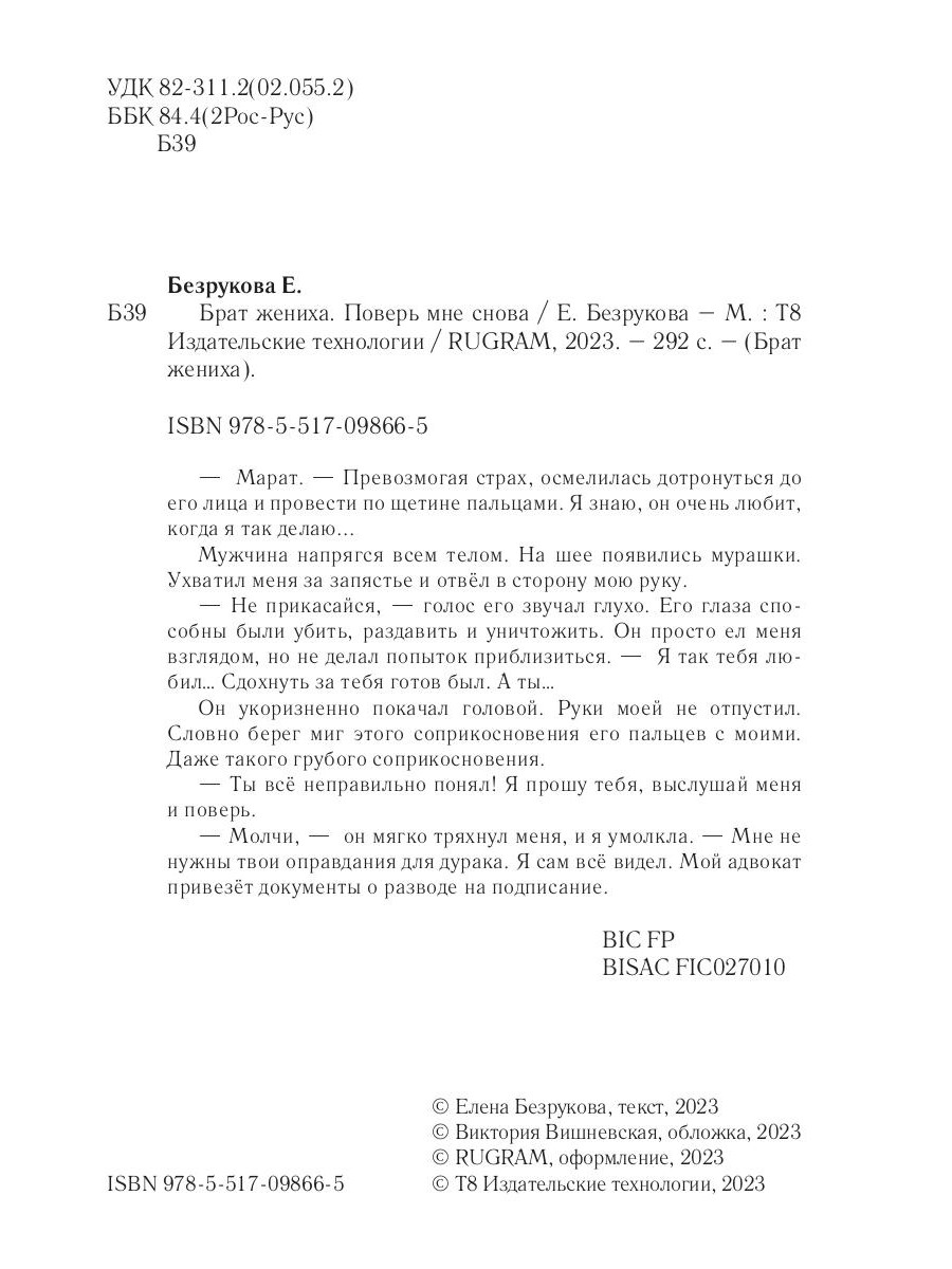 - Марат. - Превозмогая страх, осмелилась дотронуться до его лица и провести по щетине пальцами. Я знаю, он очень любит, когда я так делаю... Мужчина напрягся всем телом. На шее появились мурашки. Ухватил меня за запястье и отвёл в сторону мою руку. - Не прикасайся, - голос его звучал глухо. Его глаза способны были убить, раздавить и уничтожить. Он просто ел меня взглядом, но не делал попыток приблизиться. - Я так тебя любил… Сдохнуть за тебя готов был. А ты… Он укоризненно покачал головой. Руки моей не отпустил. Словно берег миг этого соприкосновения его пальцев с моими. Даже такого грубого соприкосновения. - Ты всё неправильно понял! Я прошу тебя, выслушай меня и поверь. - Молчи, - он мягко тряхнул меня, и я умолкла. - Мне не нужны твои оправдания для дурака. Я сам всё видел. Мой адвокат привезёт документы о разводе на подписание.| Издательство | Т8 RUGRAM |