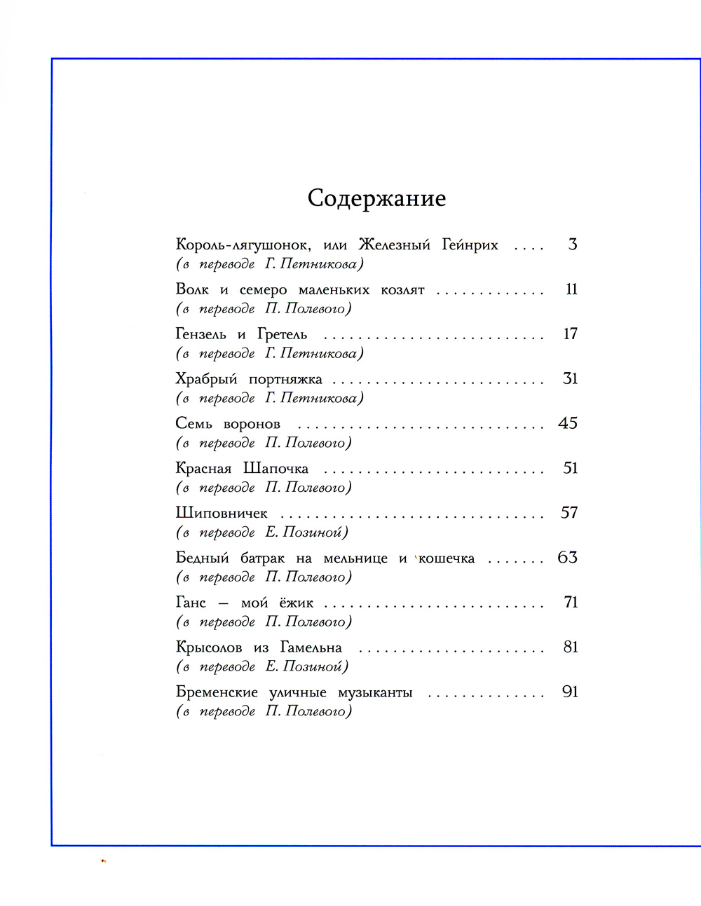 В книгу вошли всеми любимые с детства сказки братьев Гримм "Гензель и Гретель", "Храбрый портняжка", "Крысолов из Гамельна" и др. Замечательные иллюстрации Лизбет Цвергер откроют перед читателем удивительный сказочный мир.