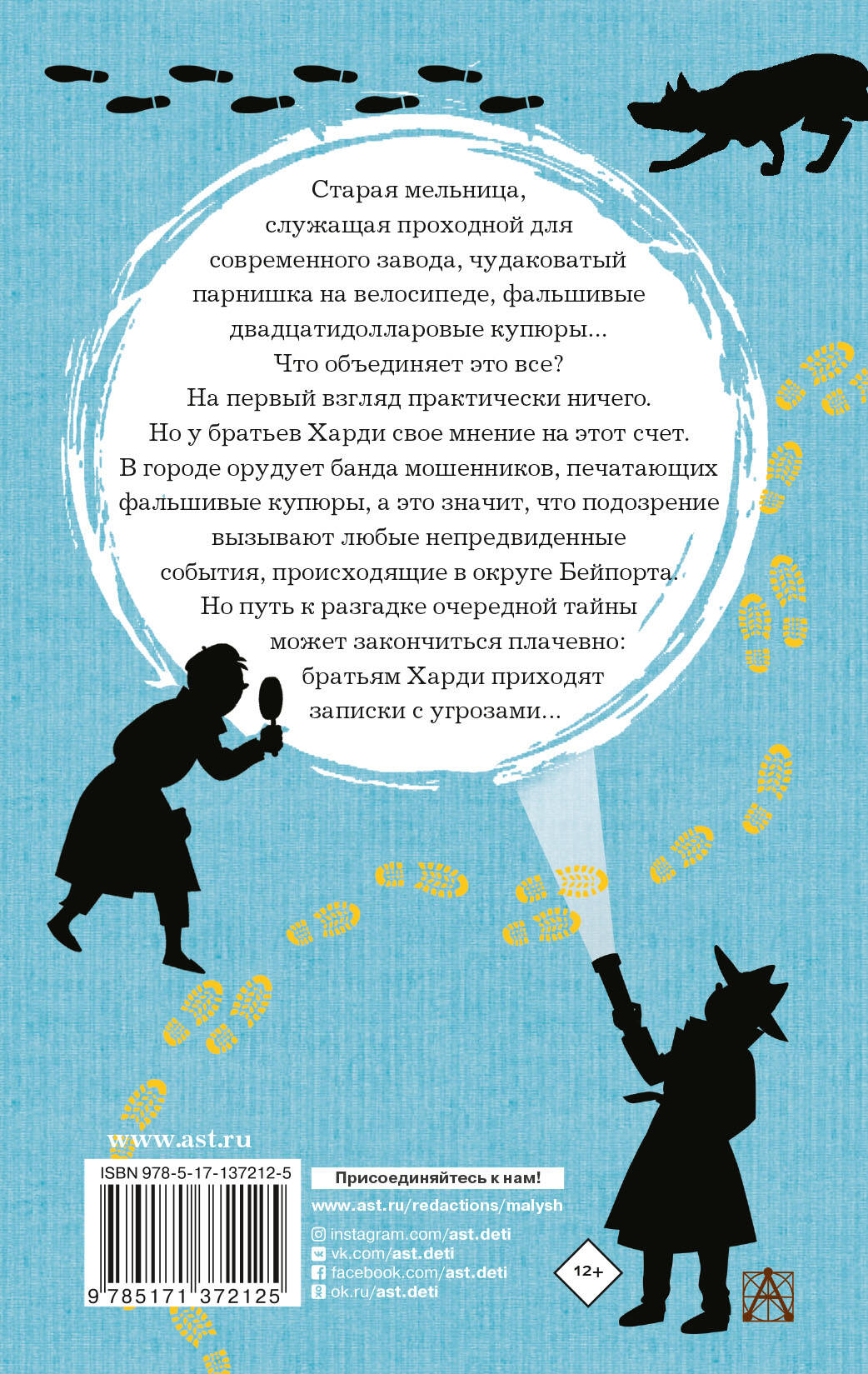В книге "Братья Харди и тайна старой мельницы" юным сыщикам придется распутать очередной клубок череды запутанных событий. В городе появились фальшивые двадцатидолларовые купюры. Догадок много, но улик - практически ни одной. Правда, одна зацепка приво- дит братьев Харди на старую мельницу, которая служит проходной для современного завода. Что-то на этой мельнице есть, но попасть туда практически невозможно. И тогда братья решают пойти на риск… Для среднего школьного возраста.| Издательство | Издательство "АСТ" |