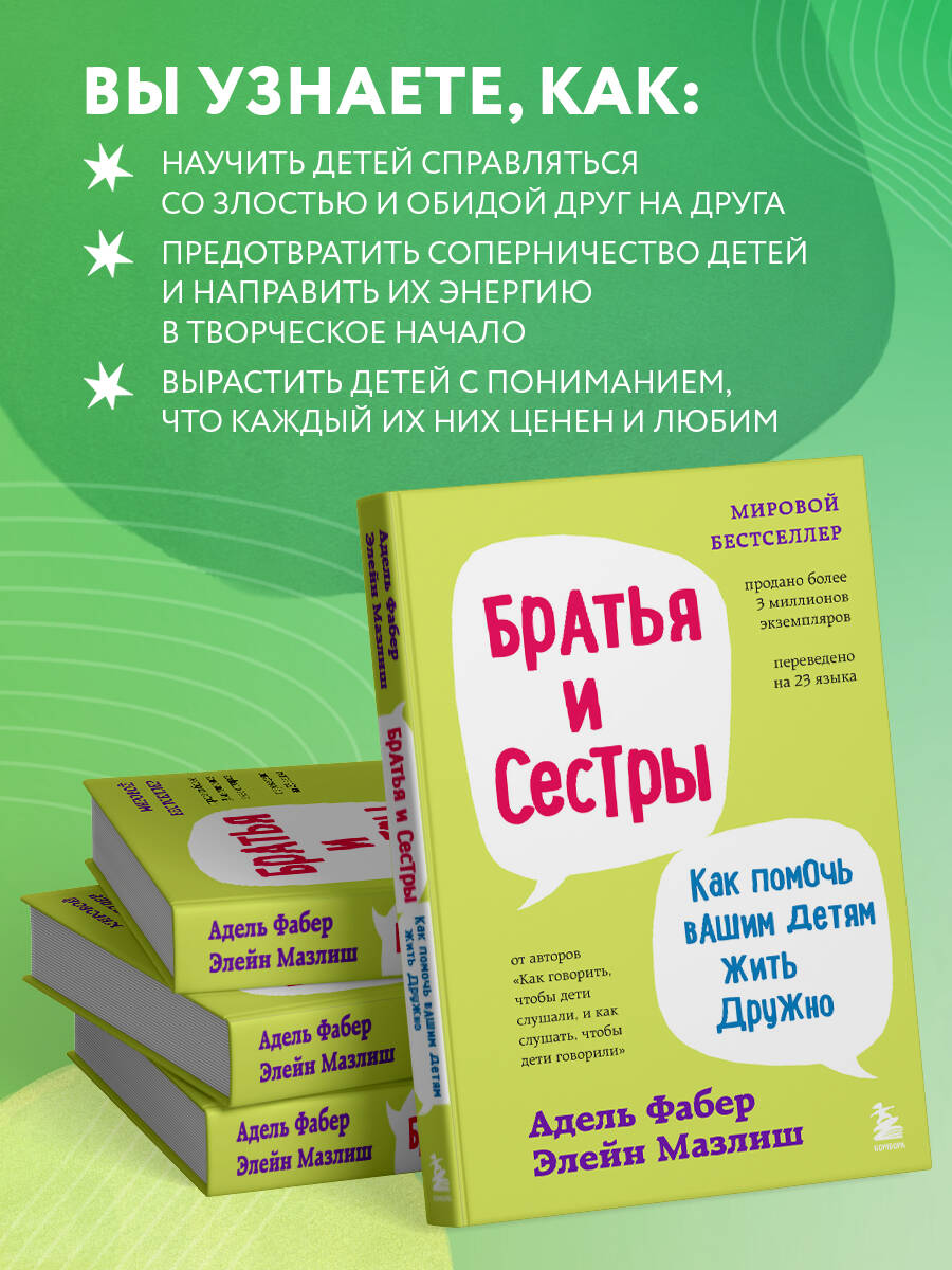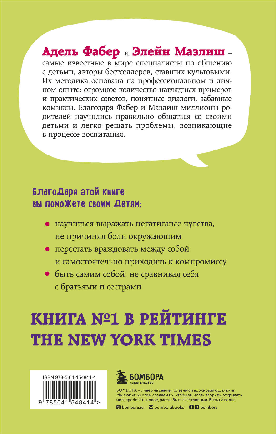 ПРОДАНО БОЛЕЕ 3 МИЛЛИОНОВ ЭКЗЕМПЛЯРОВ, ПЕРЕВЕДЕНО НА 23 ЯЗЫКА, КНИГА №1 В РЕЙТИНГЕ THE NEW YORK TIMES ПО ПРЕОДОЛЕНИЮ СОПЕРНИЧЕСТВА МЕЖДУ БРАТЬЯМИ И СЕСТРАМИ Адель Фабер и Элейн Мазлиш - самые известные в мире специалисты по общению с детьми, авторы бестселлеров, ставших классикой литературы по воспитанию. Их методика основана на профессиональном и личном опыте: большое количество наглядных примеров и практических советов, понятные диалоги, забавные комиксы. Благодаря Фабер и Мазлиш миллионы родителей научились правильно общаться со своими детьми и легко решать проблемы, возникающие в процессе воспитания. Благодаря этой книге вы поможете своим детям: - Научиться выражать негативные чувства, не причиняя боли окружающим. - Перестать враждовать между собой и самостоятельно приходить к компромиссу. - Быть самими собой, не сравнивая себя с братьями и сестрами.| Издательство | ООО "Издательство "Эксмо" |