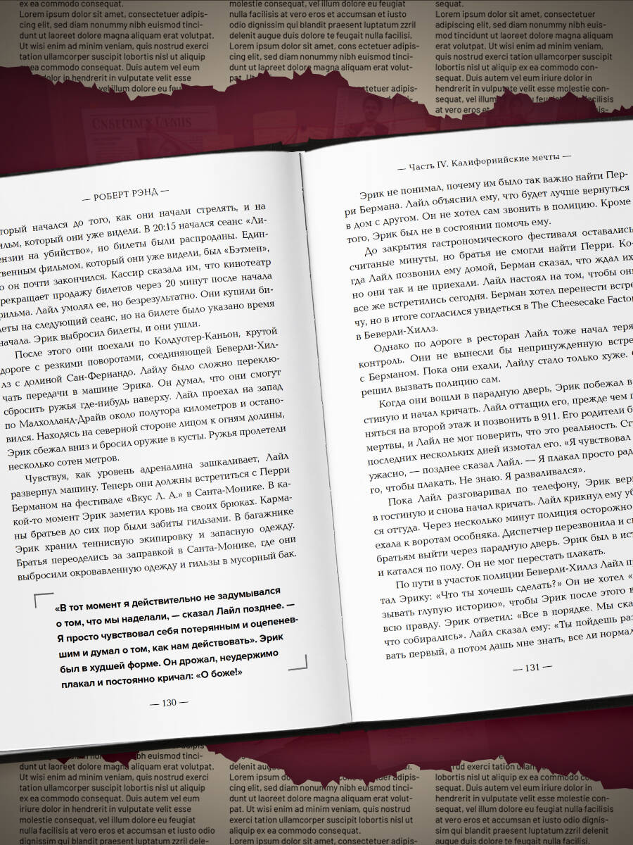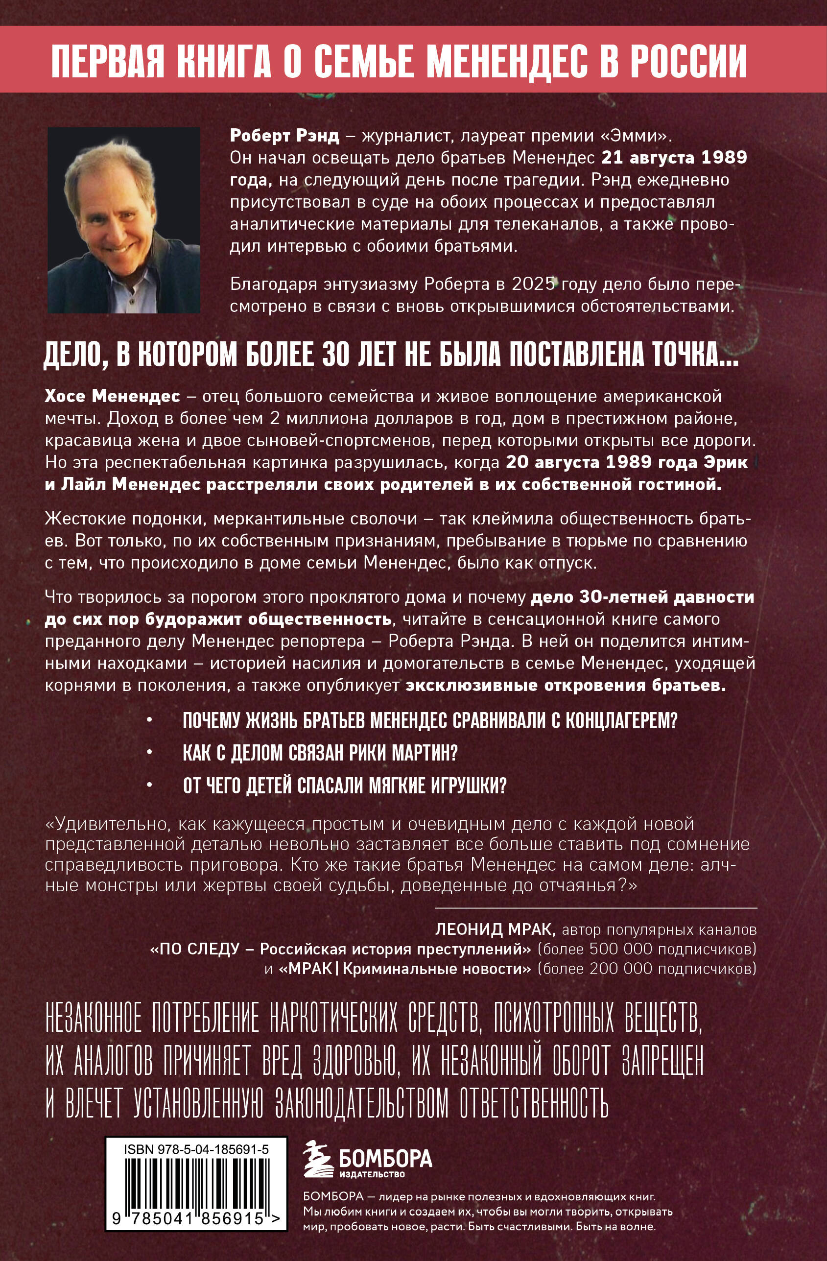 НЕЗАКОННОЕ ПОТРЕБЛЕНИЕ НАРКОТИЧЕСКИХ СРЕДСТВ, ПСИХОТРОПНЫХ ВЕЩЕСТВ, ИХ АНАЛОГОВ ПРИЧИНЯЕТ ВРЕД ЗДОРОВЬЮ, ИХ НЕЗАКОННЫЙ ОБОРОТ ЗАПРЕЩЕН И ВЛЕЧЕТ УСТАНОВЛЕННУЮ ЗАКОНОДАТЕЛЬСТВОМ ОТВЕТСТВЕННОСТЬ. Спокойный район с респектабельными жителями, роскошь, тишина, покой. Воскресный августовский день 1989-го. Казалось ничто не может нарушить размеренной жизни на Беверли Хилз. Но в одном из домов раздались выстрелы… «Такие вещи здесь не происходят!» - шептались соседи, обсуждая шокирующее убийство Хосе и Китти Менендес, главными подозреваемыми в котором стали их собственные сыновья. Но не была ли идиллическая картинка полной, обеспеченной семьи лишь хрупким фасадом, за которым скрывался настоящий АД. · Почему жизнь братьев Менендес сравнивали с концлагерем? · Как с делом связан Рики Мартин? · От чего детей спасали мягкие игрушки? Эта книга - кульминация более чем 30-летней работы журналиста Роберта Рэнда, изучившего каждую деталь жестокой трагедии. Имея уникальную возможность доступа к семье Менендес, Рэнд раскрыл необычайные подробности, ошеломляющие, никогда ранее не публиковавшиеся откровения, которые привели к пересмотру дела братьев в суде.| Издательство | ООО "Издательство "Эксмо" |