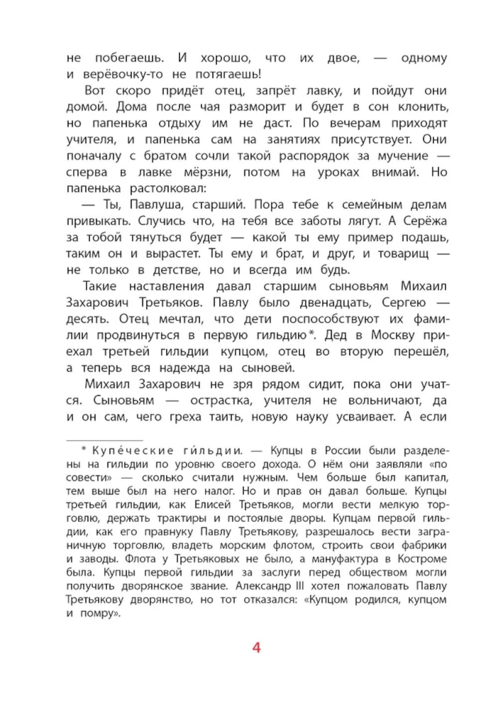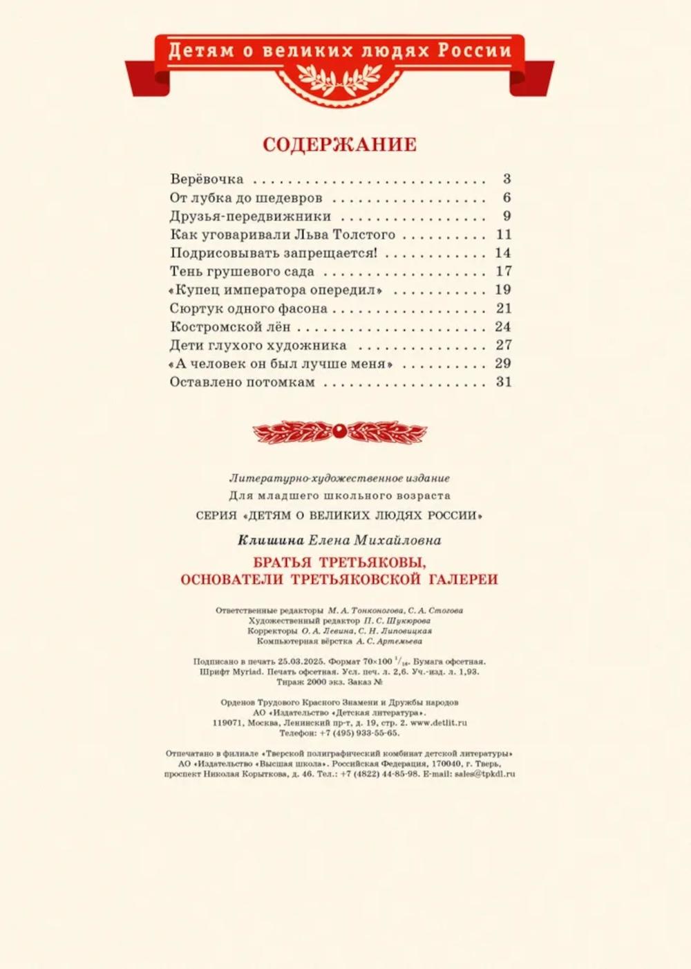 Из двух братьев Третьяковых сегодня больше известен старший, Павел Михайлович (1832-1898). Но сам он предпочитал оставаться в тени своего более деятельного младшего брата, Сергея (1834-1892). Впрочем, они не соперничали - вместе вели торговые дела, интересовались живописью, были соратниками и помогали друг другу. В 1892 году в Москве появилась первая городская художественная галерея - дар братьев Третьяковых. Павел Михайлович задолго до этого принял решение передать свою коллекцию живописи обществу, но окончательно собрался с духом после внезапной смерти брата, который завещал ему своё собрание картин. Передав галерею, Павел Третьяков продолжал пополнять её, и на момент его смерти там было представлено более трёх тысяч экспонатов. Сегодня Третьяковская галерея входит в число самых известных художественных музеев мира и привлекает огромное число отечественных и зарубежных посетителей. Книга повествует о жизни и деятельности двух знаменитых отечественных меценатов - купцов Павла и Сергея Третьяковых. Именно с их собрания картин началась коллекция нынешней всемирно известной Третьяковской галереи. Павел Михайлович передал её городу. Благодаря им мы можем сейчас любоваться знаменитыми полотнами русских живописцев. Для младшего школьного возраста.| Издательство | Детская литература |