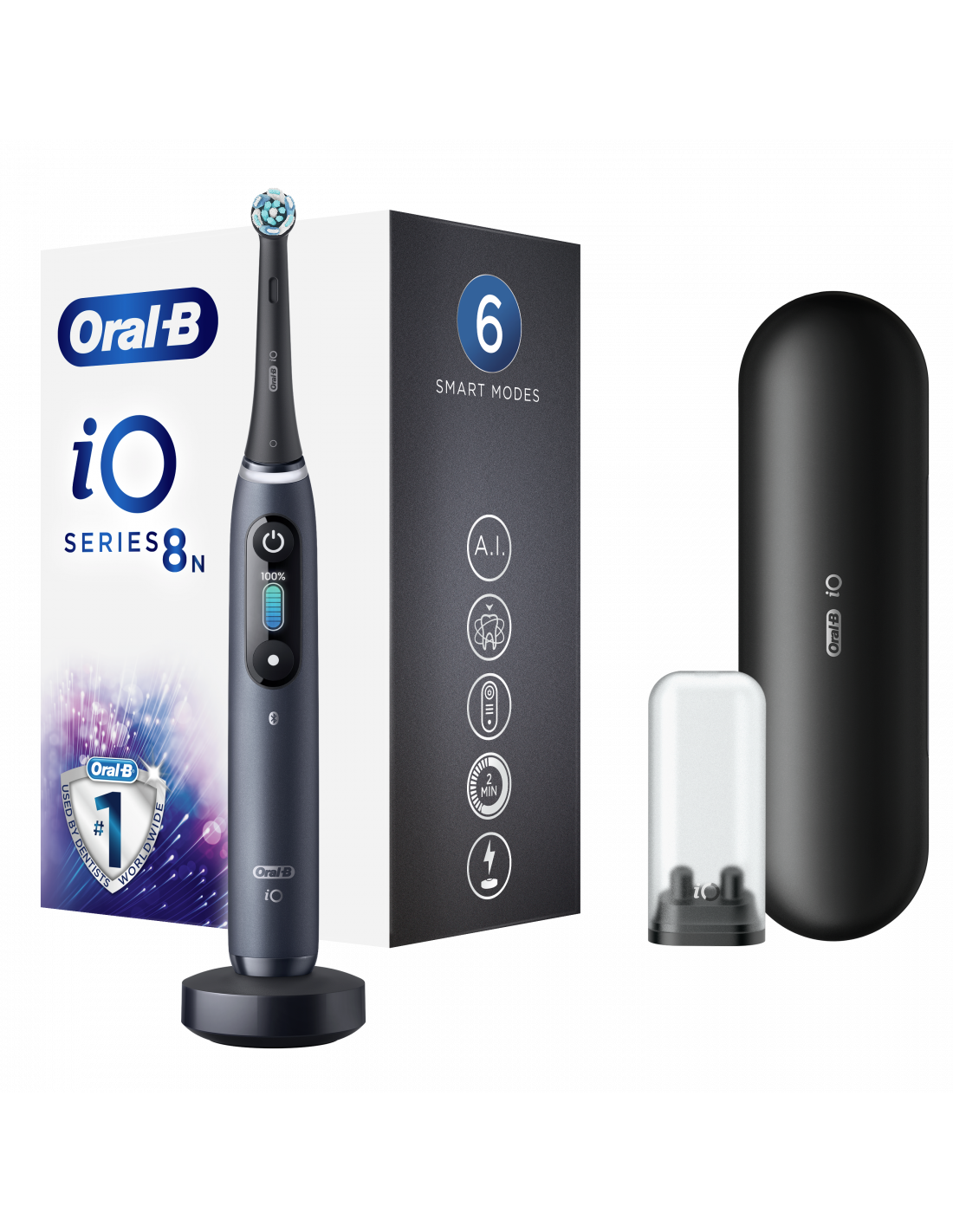 - iO™ - лучшая технология чистки зубов Oral-B, сочетающая в себе постоянную энергию микровибрирующих щетинок с круглой насадкой Oral-B, вдохновленной стоматологами. Он оснащен первой в мире системой плавного магнитного привода.