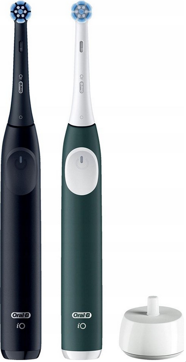 Oral-B iO 2 Duo Электрические зубные щётки - Night Black & Forest Green - комплект из двух ручек с мощностью и стилем. Основан на технологии iO от Oral-B, сочетает круглую головку, вдохновлённую стоматологами, и мягкие микровибрации, которые эффективно удаляют налёт и при этом мягко воздействуют на дёсны.