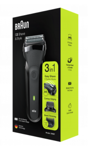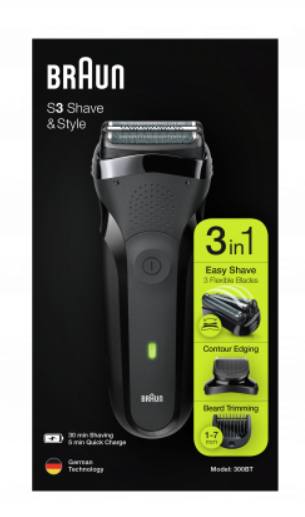 - В комплект входит бритва «Браун» 3 серии, сменный наконечник бритвы, сменный прецизионный триммер, пять насадок-триммеров, защитный колпачок, автоматически настраивающийся на напряжение 100-240В.