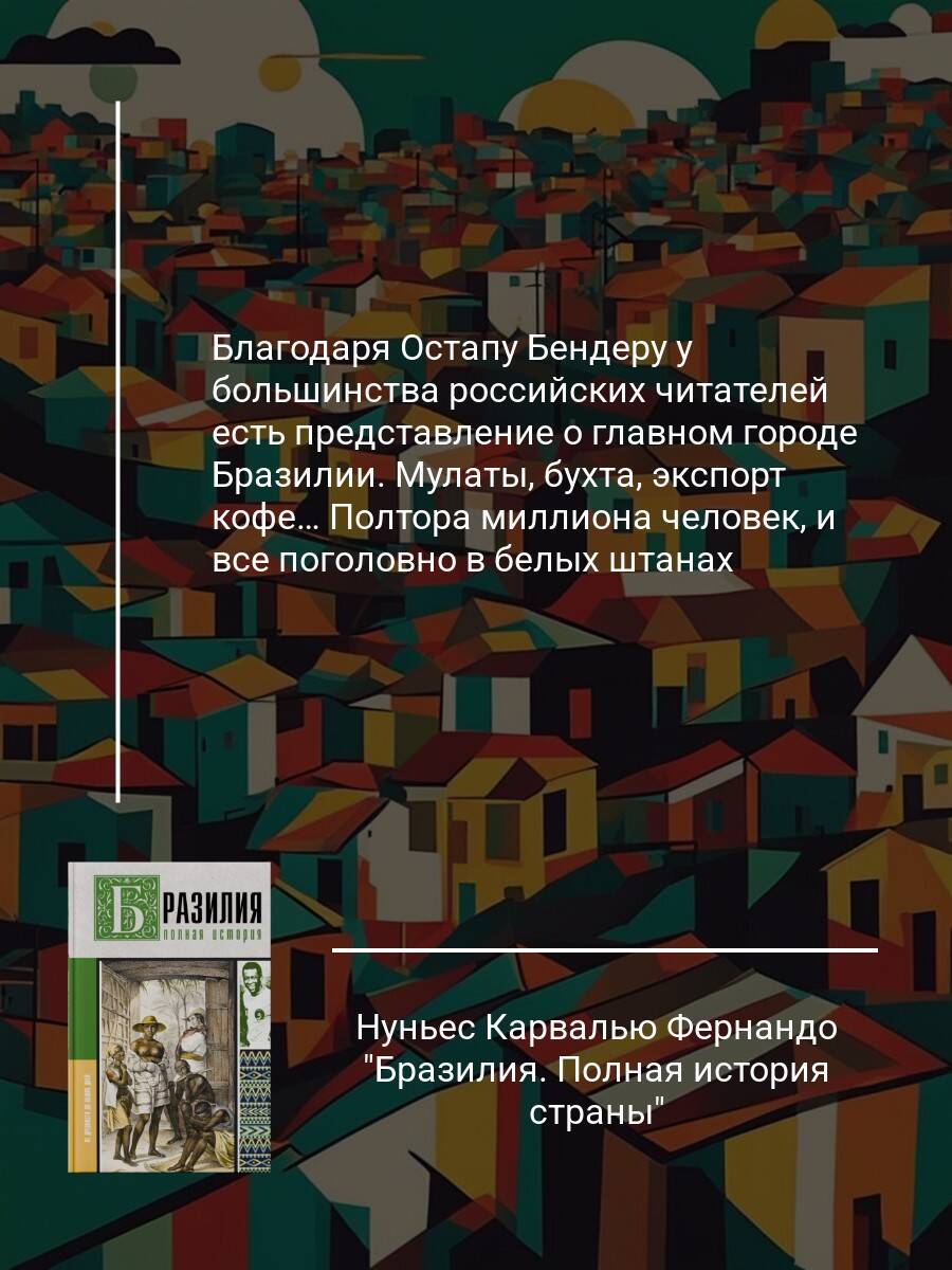 Благодаря Остапу Бендеру у большинства российских читателей есть представление о главном городе Бразилии. Мулаты, бухта, экспорт кофе… Полтора миллиона человек, и все поголовно в белых штанах. В Бразилии проводятся феерические карнавалы, таких нигде больше нет. Ну и, конечно же, все любители футбола (и не только они) знают, что в Бразилии родились Пеле и Роналду… А еще в Бразилии есть фавелы - трущобы, в которые боится заходить даже суровая бразильская полиция. Эта книга даст вам возможность побывать в Бразилии и понять эту замечательную страну, не вставая с дивана. Разве не замечательно? Столько пользы и никаких усилий, знай только страницы переворачивай.| Издательство | Издательство "АСТ" |
