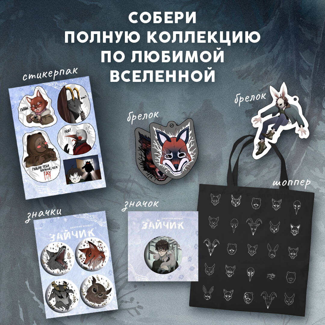 «Зайчик» Дмитрия Мордаса - это не только рассказ, это целая вселенная! Дополни свою фанатскую коллекцию стильным мерчем - эксклюзивным двухсторонним брелоком с изображением лисы! Хоррор-история «Зайчик» вышла за пределы рассказа и визуальной новеллы. Теперь это еще и комикс, вебтун, мерч! Читай рассказ в классическом варианте или в виде комикса, а может быть, тебе придётся по душе формат вебтуна. Не расставайся с любимыми героями ни на минуту, собери коллекцию мерча с персонажами комикса, состоящую из значков, брелоков, стикерпака и шоппера! И это ещё не всё - список будет пополняться!| Издательство | ООО "Издательство "Эксмо" |