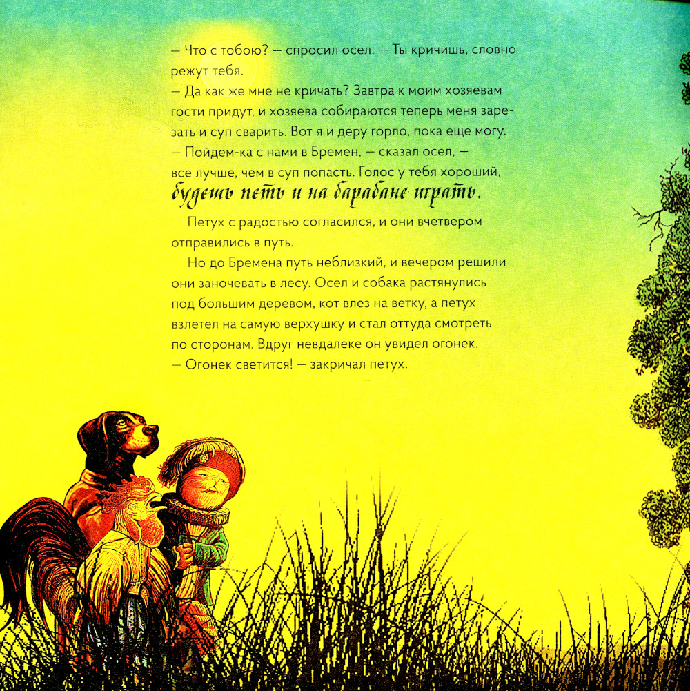 Сказку «Бременские музыканты» братьев Гримм мы решили преподнести читателям в новом свете - в таинственном и неповторимом «рембрандтовском свете»! Отправляйтесь навстречу приключениям: пройдите по лунным и дневным пейзажам, как следует рассмотрите портрет разбойника в окошке дома, изящные одежды героев и музыкальные инструменты Золотого века голландской живописи. Сравнивайте иллюстрации из книги с оригиналами работ великого мастера, ищите общие детали и улавливайте различия, обсуждайте цветовую палитру и особенности эпохи. Для этого не нужно быть искусствоведом, достаточно увлечься сказкой и иллюстрациями. В конце книги можно прочитать об основных этапах творческого развития художника и узнать интересные факты о нем. Сюда же мы поместили репродукции оригинальных работ, которыми вдохновлялся наш иллюстратор. А также наведите камеру на QR-код и посетите наш бесплатный виртуальный Музей VoiceBook. В зале музея можно подходить к картинам, рассматривать их и слушать аудиогид, разработанный искусствоведом специально для детей! «Сказки в стиле великих художников» - это целая коллекция популярных сказок с иллюстрациями в стиле работ известных во всем мире мастеров разных эпох и направлений. Вас ждет большой мир искусства в компактной книге.