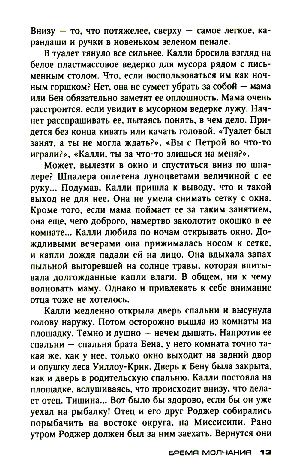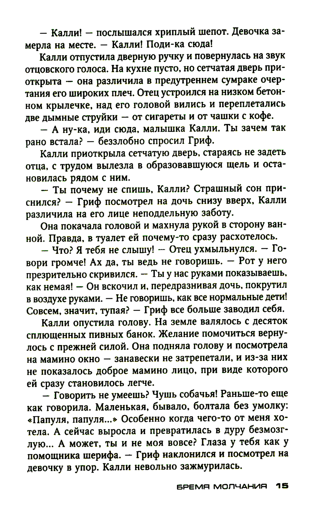 В Уиллоу-Крик, маленьком городке штата Айова, пропали две семилетние девочки - Калли Кларк и ее лучшая подруга Петра Грегори. Отец Калли - алкоголик, который, напившись, избивает жену и старшего сына Бена. Несколько лет назад после особенно безобразной сцены Калли перестает говорить, и ее «голосом» становится Петра. Поиском подруг занимается помощник шерифа Лорас Луис. Он боится, что девочек похитил опасный маньяк, который год назад при сходных обстоятельствах изнасиловал и убил десятилетнюю девочку. Тогда преступника найти не удалось...| Издательство | Центрполиграф |
