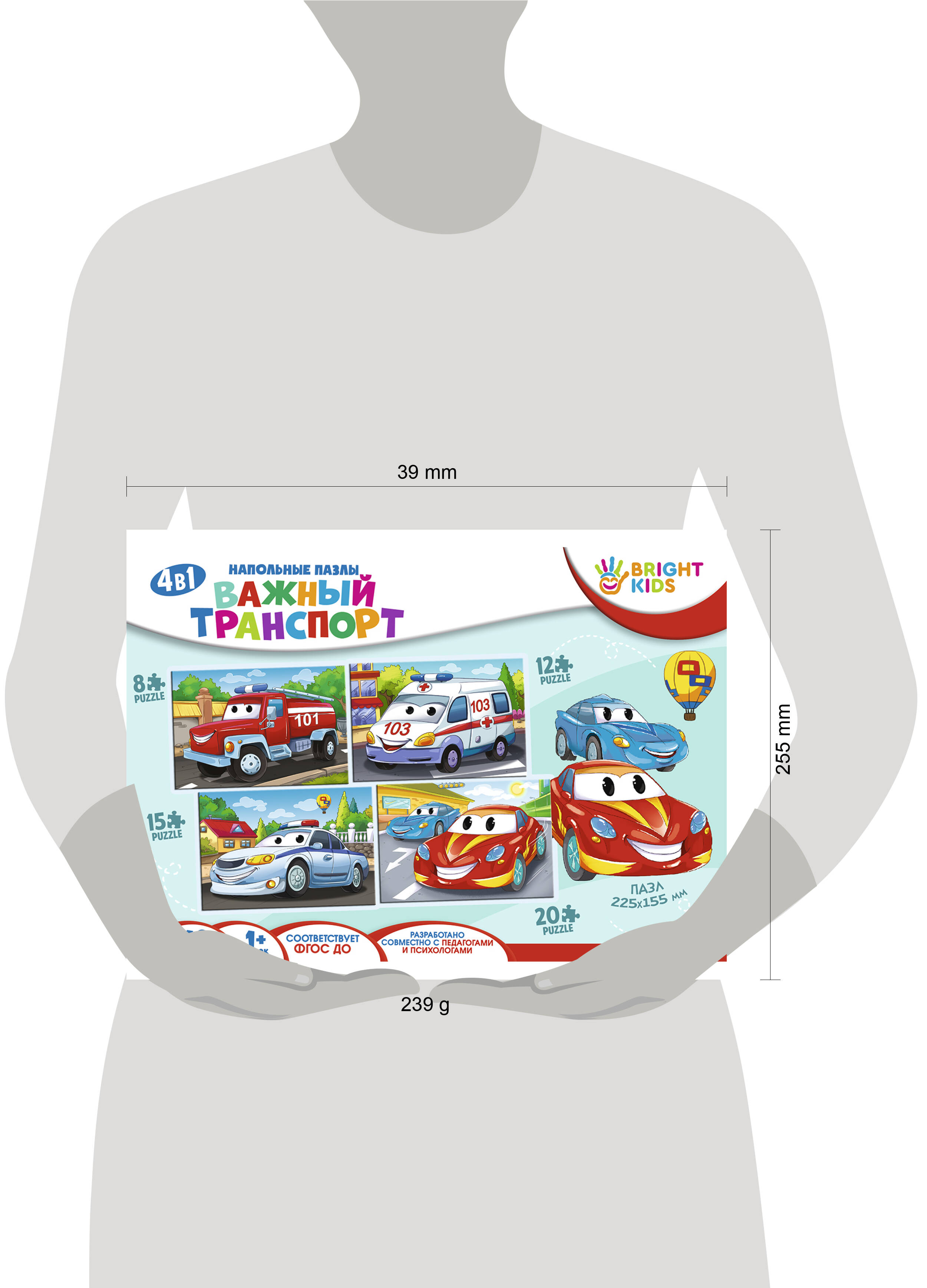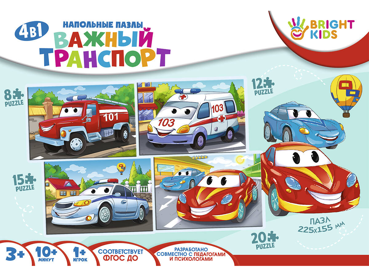 Аннотация: Bright Kids ПАЗЛ НАПОЛЬНЫЙ 4в1.Важный транспорт (Арт. П-0491)