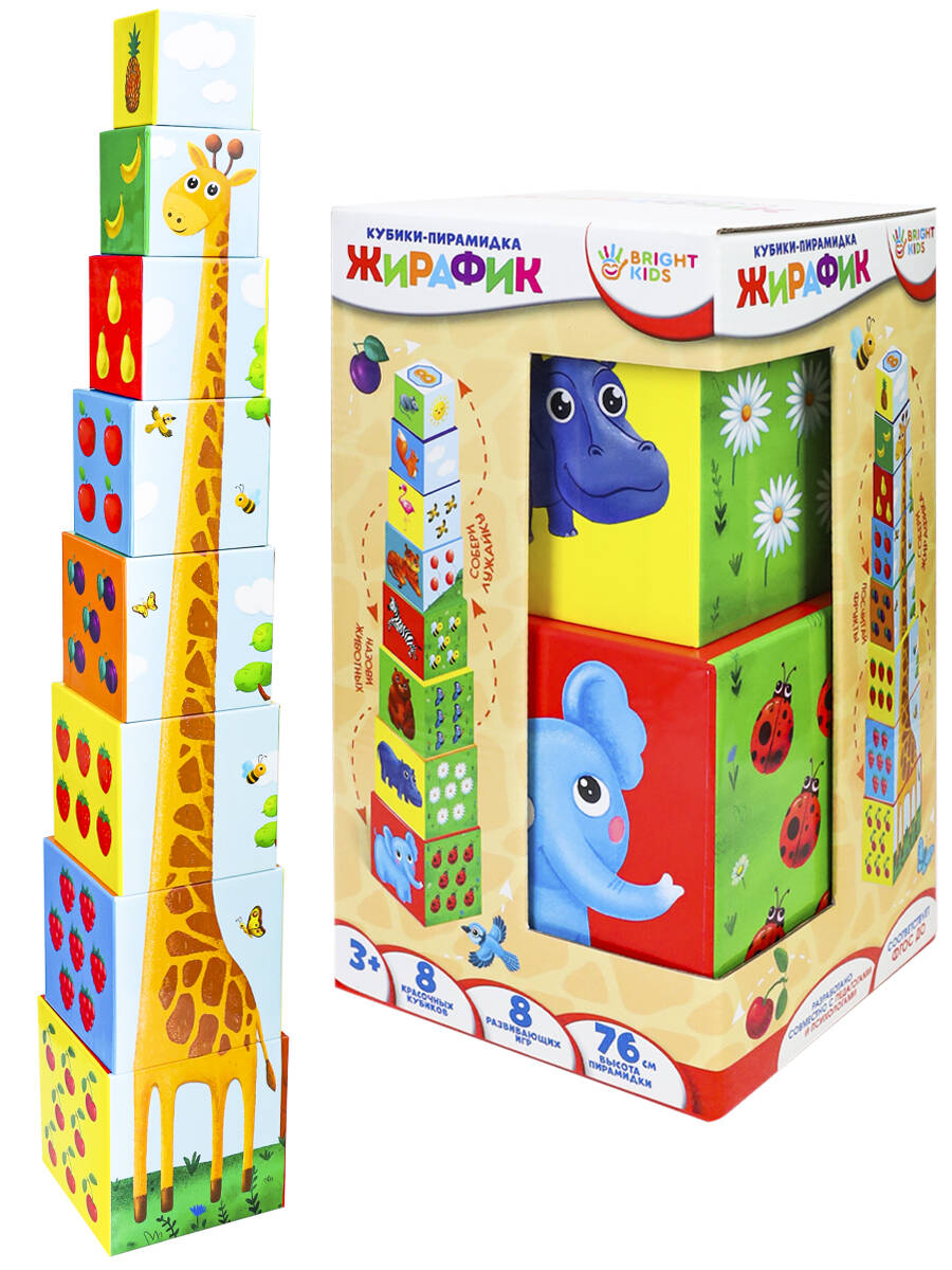 BRIGHT KIDS.Серия "Разумные детки". Кубики-пирамидка ЖИРАФИК Арт. (И-5032)