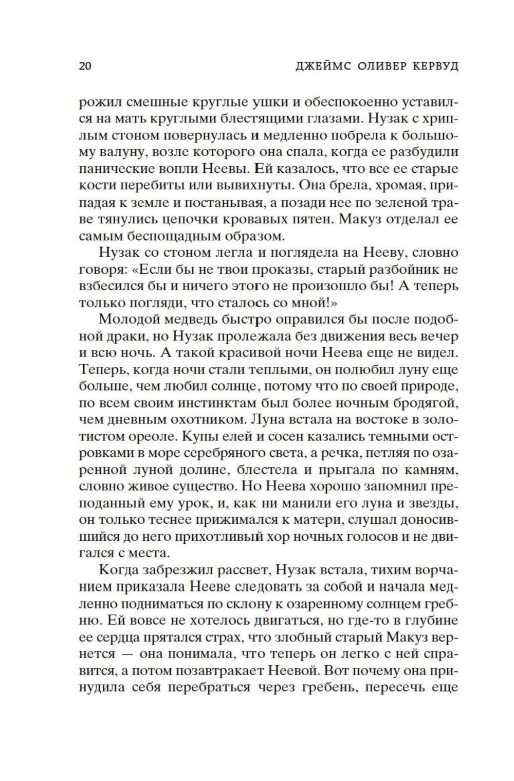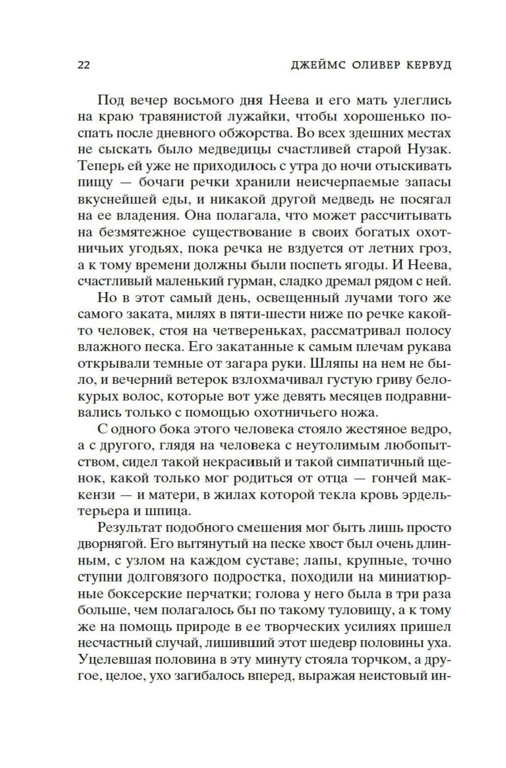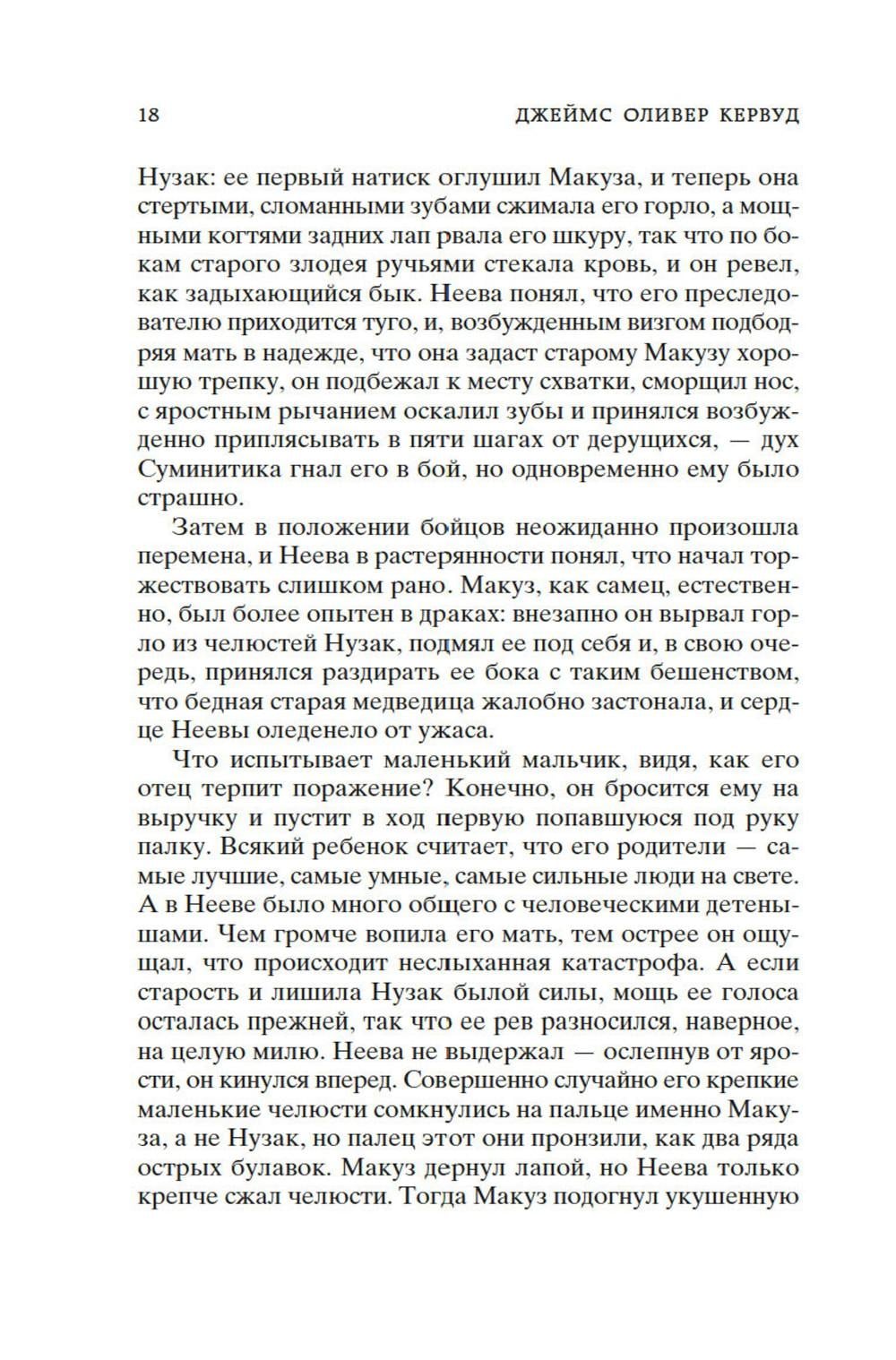 Американский писатель, охотник, путешественник и натуралист Джеймс Оливер Кервуд вошел в историю литературы как классик приключенческой и анималистической прозы, чьи книги стоят в одном ряду с «Зовом предков» и «Белым Клыком» Джека Лондона и «Рассказами о животных» Эрнеста Сетона-Томпсона. Темы, сюжеты и персонажи произведений Кервуда ведут свое происхождение из глухих таежных районов Северной Канады и Аляски, в странствиях по которым автор провел значительную часть жизни. На долю главных героев романа «Бродяги Севера» (1919) - домашнего щенка Мики и медвежонка Неевы, случайно оказавшихся вдвоем в лесу, - выпадает череда суровых и опасных, на грани гибели, испытаний, в ходе которых они взрослеют, мужают, сдружаются и учатся взаимовыручке. Роман «В дебрях Севера» (1922) повествует о непростом путешествии бесстрашного и благородного разбойника Роджера Мак-Кея, его юной возлюбленной Нейды и их верного пса Питера Хромули, преследуемых Королевской конной полицией, через всю Канаду - с юга на север и обратно, по пронизанным ветрами и снежными вихрями бескрайним просторам североамериканской тундры...| Издательство | Азбука |