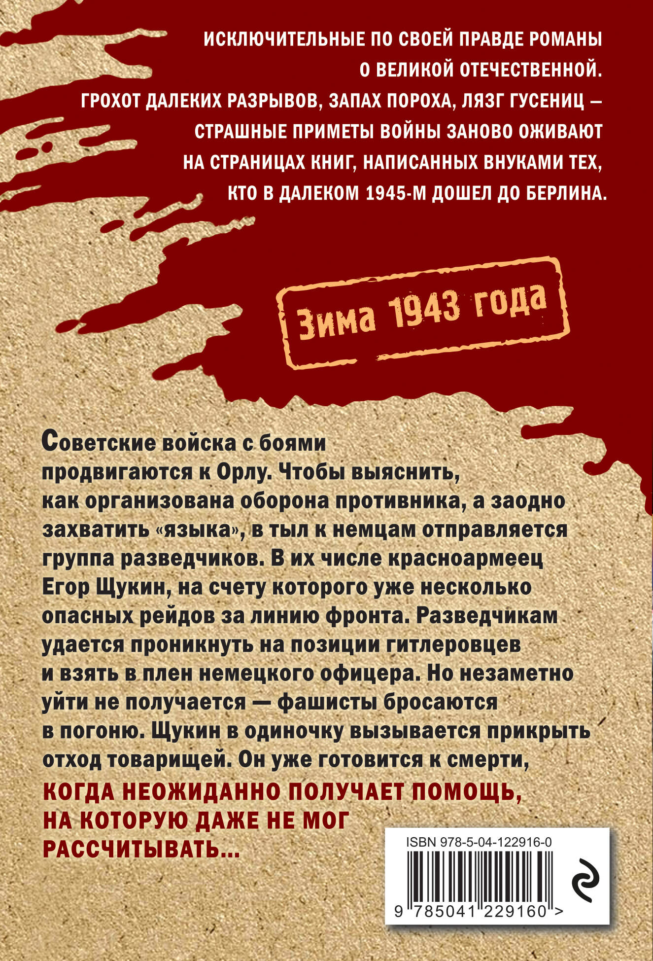 Исключительные по своей правде романы о Великой Отечественной. Грохот далеких разрывов, запах пороха, лязг гусениц - страшные приметы войны заново оживают на страницах книг, написанных внуками тех, кто в далеком 1945-м дошел до Берлина. Зима 1943 года. Советские войска с боями продвигаются к Орлу. Чтобы выяснить, как организована оборона противника, а заодно захватить «языка», в тыл к немцам отправляется группа разведчиков. В их числе красноармеец Егор Щукин, на счету которого уже несколько опасных рейдов за линию фронта. Разведчикам удается проникнуть на позиции гитлеровцев и взять в плен немецкого офицера. Но незаметно уйти не получается - фашисты бросаются в погоню. Щукин в одиночку вызывается прикрыть отход товарищей. Он уже готовится к смерти, когда неожиданно получает помощь, на которую даже не мог рассчитывать…| Издательство | ООО "Издательство "Эксмо" |