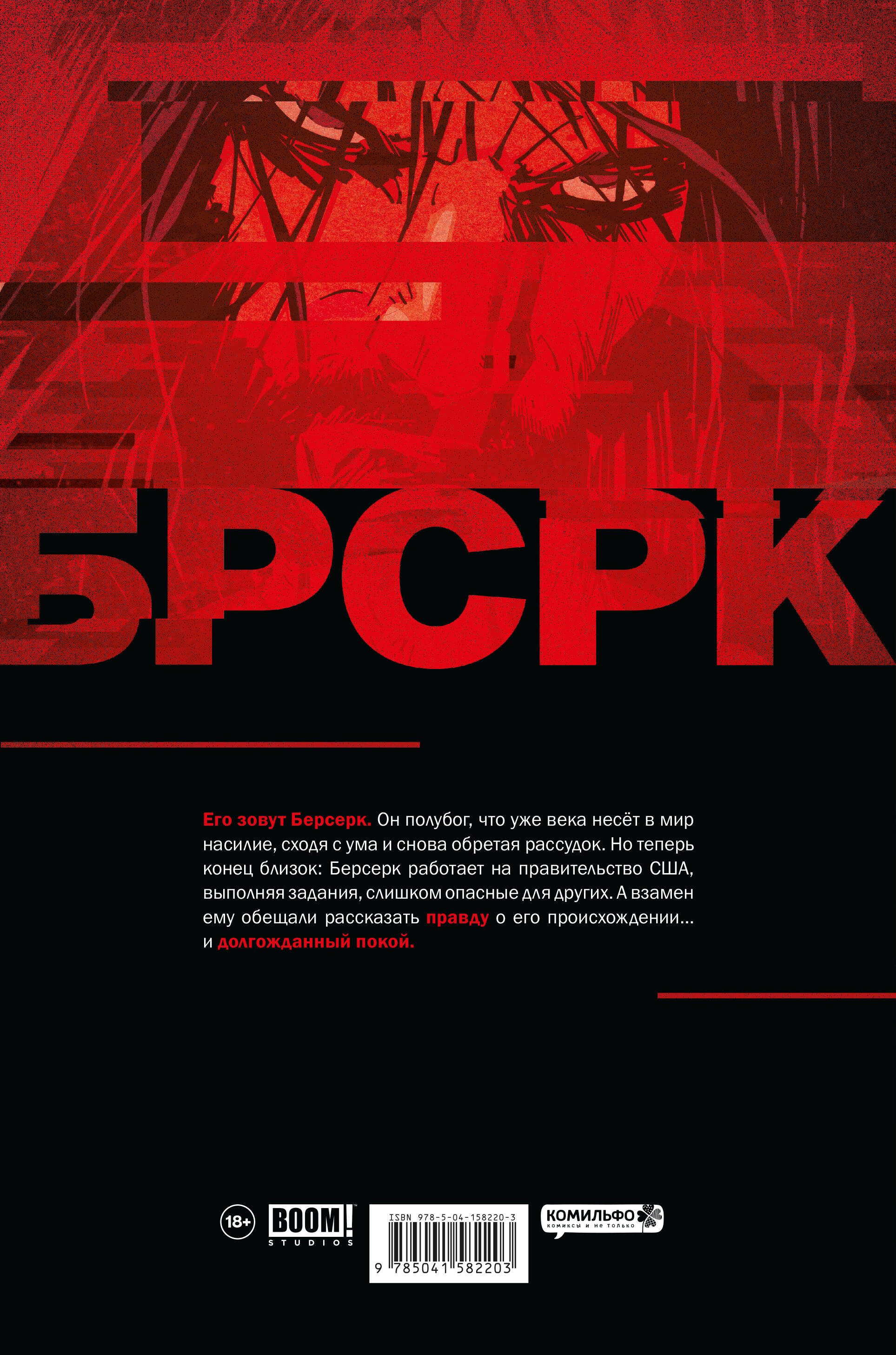 Его зовут Берсерк. Он полубог, что уже века несёт в мир насилие, сходя с ума и снова обретая рассудок. Но теперь конец близок: Берсерк работает на правительство США, выполняя задания, слишком опасные для других. А взамен ему обещали рассказать правду о его происхождении… и помочь наконец обрести покой. - Суперуспешный комикс от звезды Голливуда КИАНУ РИВЗА. - Netflix уже анонсировал кино-адаптацию комикса с Ривзом в главной роли. - Комикс, который обсуждается сообществом уже на протяжении года, собравший только на предзаказе более миллиона долларов.| Издательство | ООО "Издательство "Эксмо" |