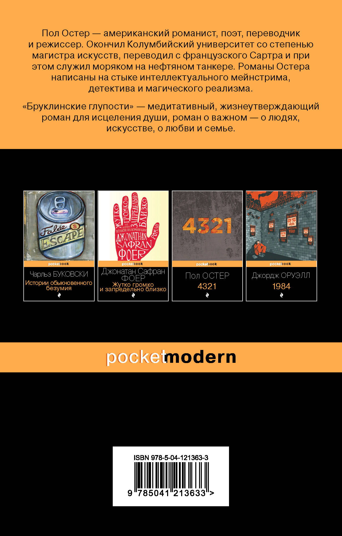 От автора культового романа "4321", вошедшего в шорт-лист Букеровской премии и ставшего мировым бестселлером. "Бруклинские глупости" - роман, написанный в начале нулевых, в котором Пол Остер запечатлел с пронзительной точностью дух уходящего тысячелетия. Обилие колоритных персонажей, яркая, громкая городская жизнь и идиллическое умиротворение пригорода - атмосферность этой книги окутает вас с головой. "Бруклинские глупости" - медитативный, жизнеутверждающий роман для исцеления души, роман о важном, о людях, искусстве, о любви и семье.