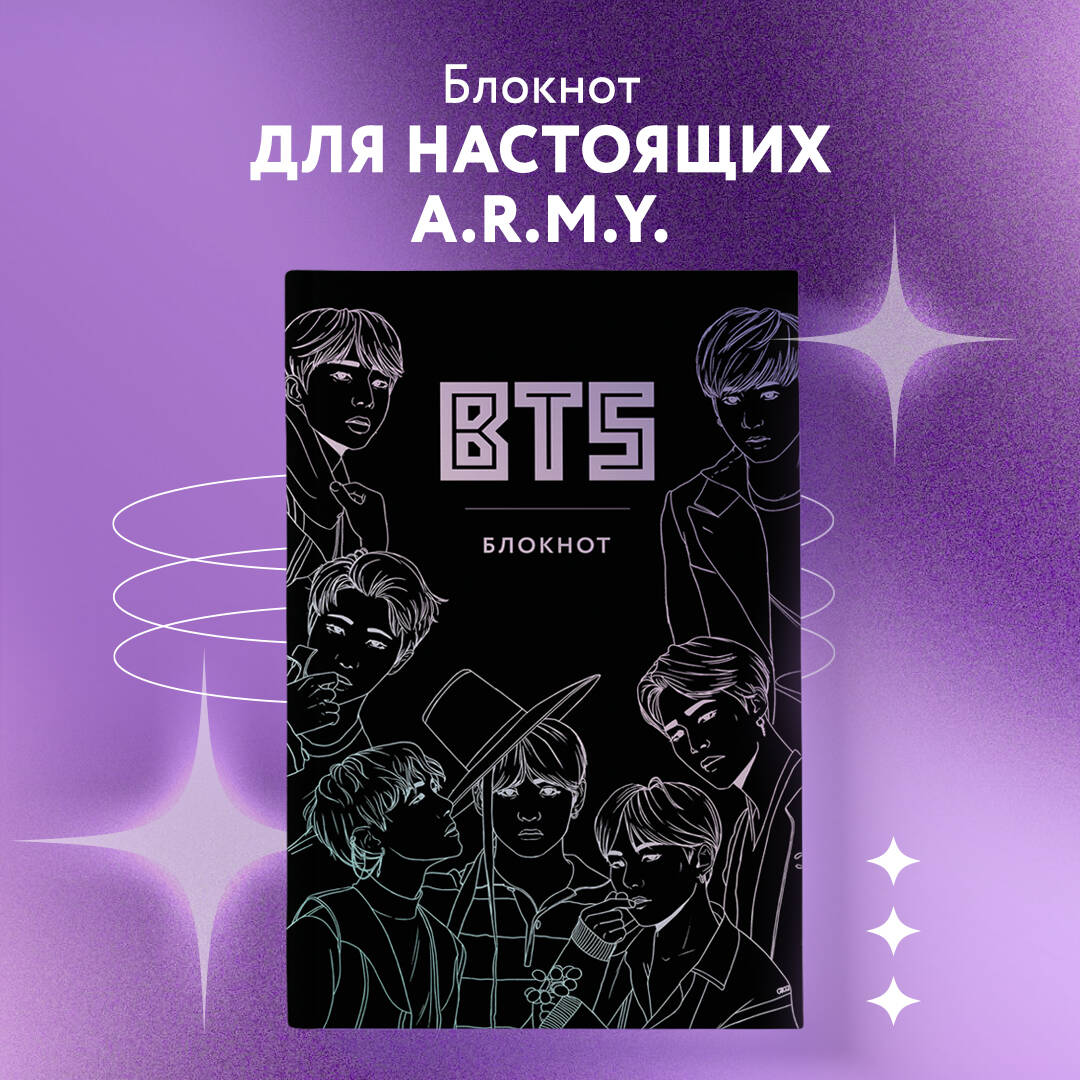 Невероятно крутой подарок для участников BTS A.R.M.Y.! Блокноты для тех, кто носит творчество BTS в сердце, - теперь частичку группы можно носить с собой и в сумке. Обложка со всеми участниками группы теперь в подарочном формате! Компактный размер блокнота, стильный блок в линейку и странички с изображениями солистов - подойдет для записи чего угодно. Лекции, заметки, мысли, собственное творчество - только вам решать, что будет внутри!| Издательство | Эксмо |