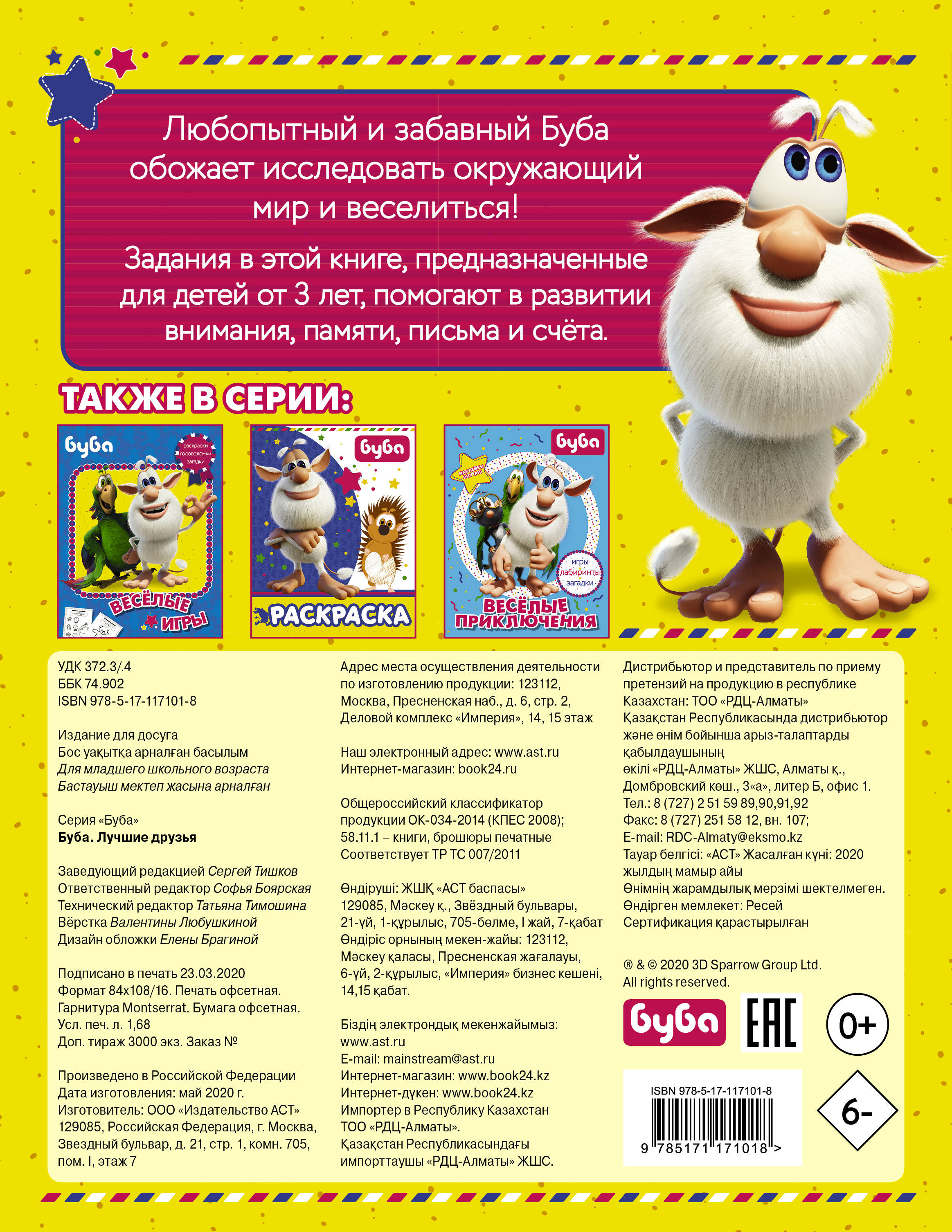 Любопытный и забавный Буба обожает исследовать окружающий мир и веселиться! Задания в этой книге, предназначенные для детей от 3 лет, помогают в развитии внимания, памяти, письма и счёта.| Издательство | ИЗДАТЕЛЬСТВО "АСТ" |