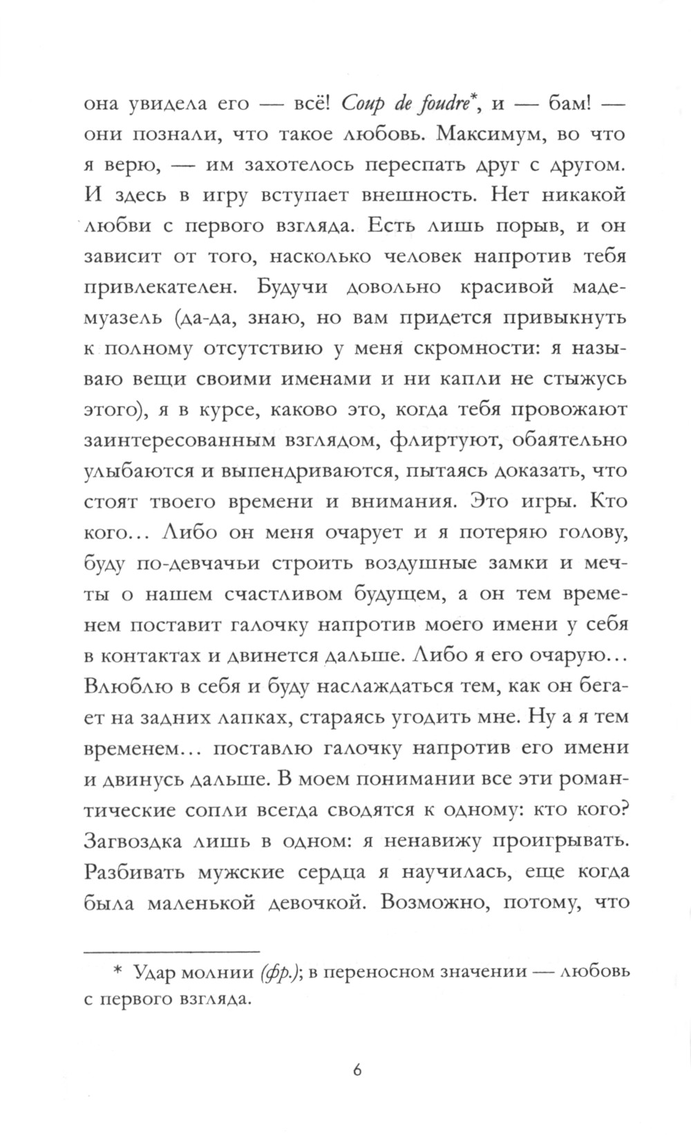 Нахальный, самодовольный, с глазами цвета кока-колы. Мой любимый типаж. Сбивать спесь с дерзких парней - мое призвание. В любовных играх мне нет равных. Никто еще не устоял перед Полин Миссера. Я привыкла выигрывать, но в этот раз победа будет нелегкой. Что, если мое сердечко плавится, как мороженое на солнце, при виде его улыбки? Что, если я не могу устоять перед музыкой, которую он играет? Нет-нет, подайте мне, пожалуйста, таблетку от этой глупости. Глупости, имя которой Валентин.