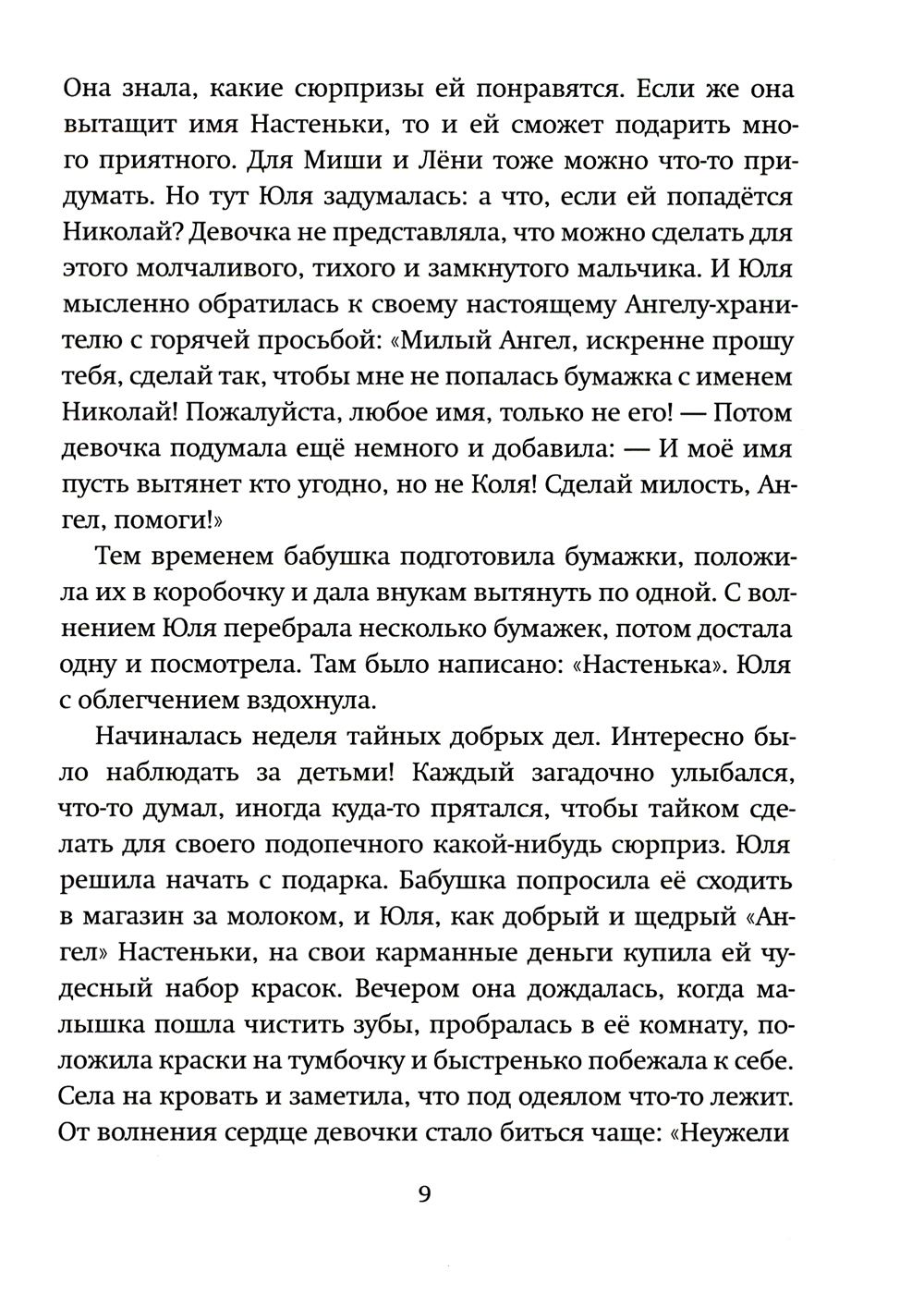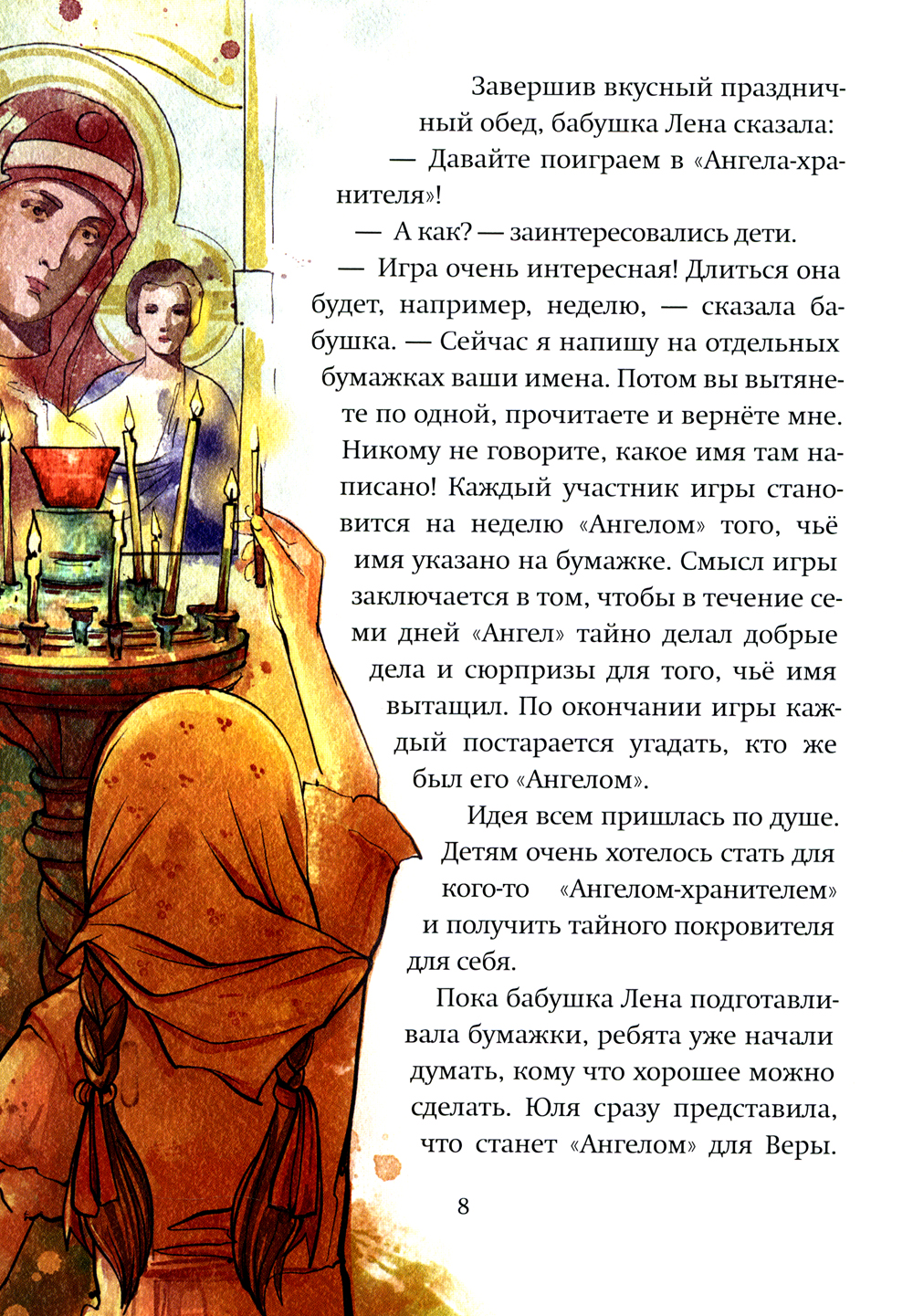 Главные герои книги «Будь моим Ангелом!» - большая компания из трёх мальчиков и трёх девочек. Все они приезжают на летние каникулы к любимой бабушке Елене в деревню. Там их ждут увлекательные игры, интересное общение и много полезных и удивительных открытий. Ребятам предстоит получить опыт в умении строить отношения, пересматривать сложившееся мнение, учиться быть добрее и даже стремиться совершать маленькие тайные чудеса для своих близких. Мудрая бабушка Елена нашла замечательный способ, который помог её внукам сблизиться и почувствовать, как хорошо иметь большую дружную семью.| Издательство | Благовест |