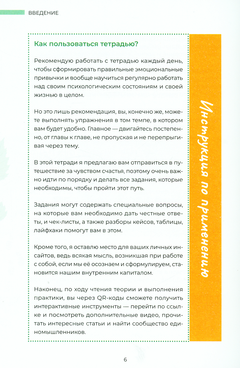 «Счастлив по собственному желанию» - ваш шанс на счастливую жизнь! Андрей Курпатов создал для вас уникальную рабочую тетрадь, которая научит вас чувствовать себя счастливыми! Здесь вы найдёте самые эффективные психотерапевтические практики. Они помогут вам лучше понять себя, справиться с тревогами и унынием, научиться жить осознанной и полноценной жизнью! Десятки заданий и упражнений, практические кейсы, инструкции и интерактив, лучшие практики «Академии смысла» - всё это в рабочей тетради, которую вы держите в руках! Присоединяйтесь к нашему сообществу и меняйте свою жизнь к лучшему!| Издательство | ИД "Нева" |