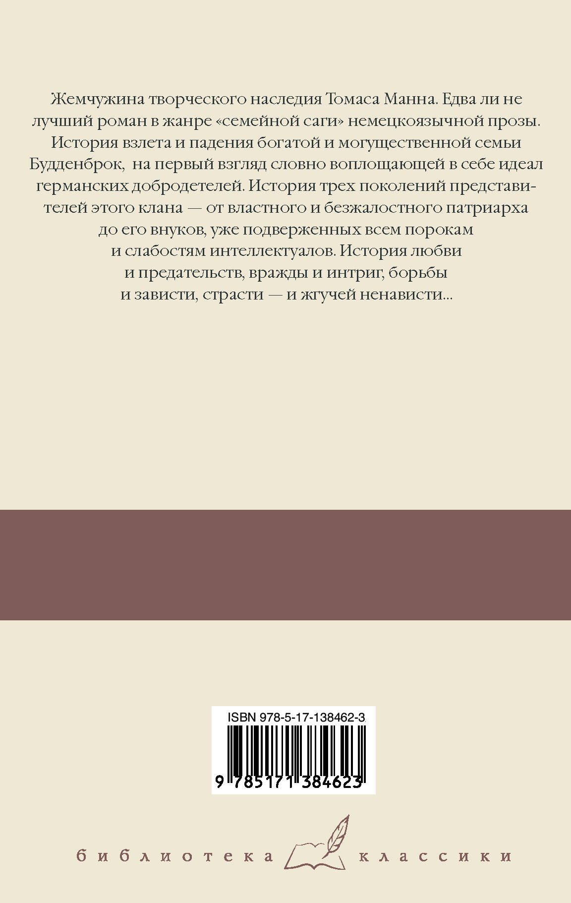 Жемчужина творческого наследия Томаса Манна. Едва ли не лучший роман в жанре "семейной саги" немецкоязычной прозы. История взлета и падения богатой и могущественной семьи Будденброк, на первый взгляд словно воплощающей в себе идеал германских добродетелей. История трех поколений представителей этого клана - от властного и безжалостного патриарха до его внуков, уже подверженных всем порокам и слабостям интеллектуалов. История любви и предательств, вражды и интриг, борьбы и зависти, исступленной страсти - и жгучей ненависти…
