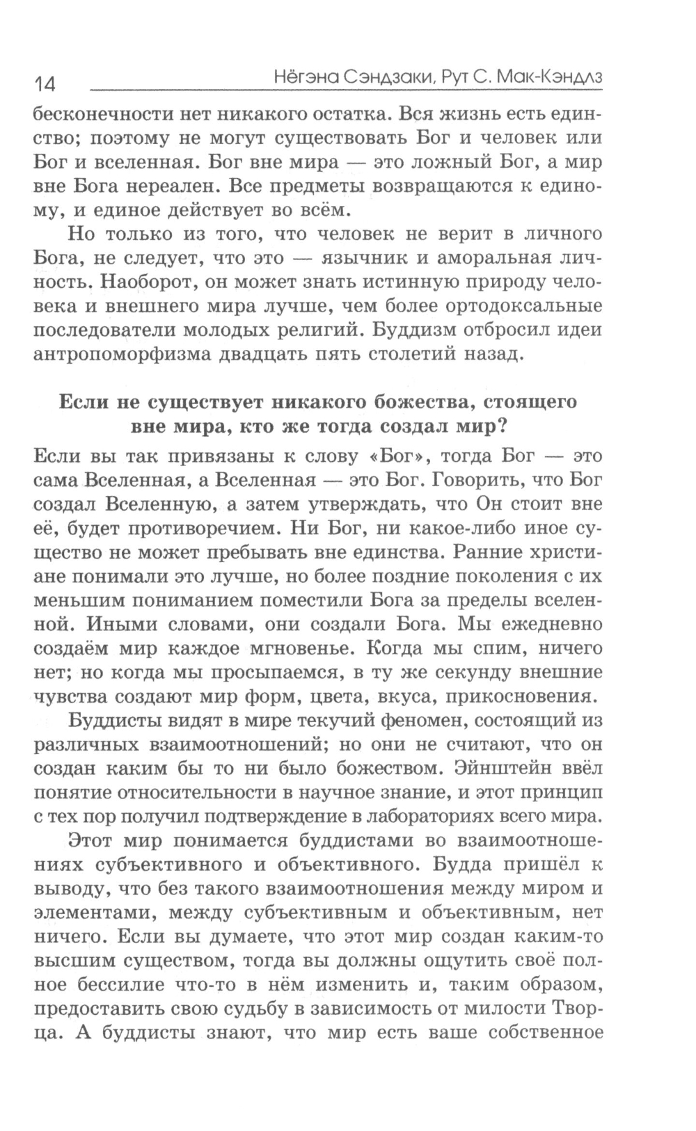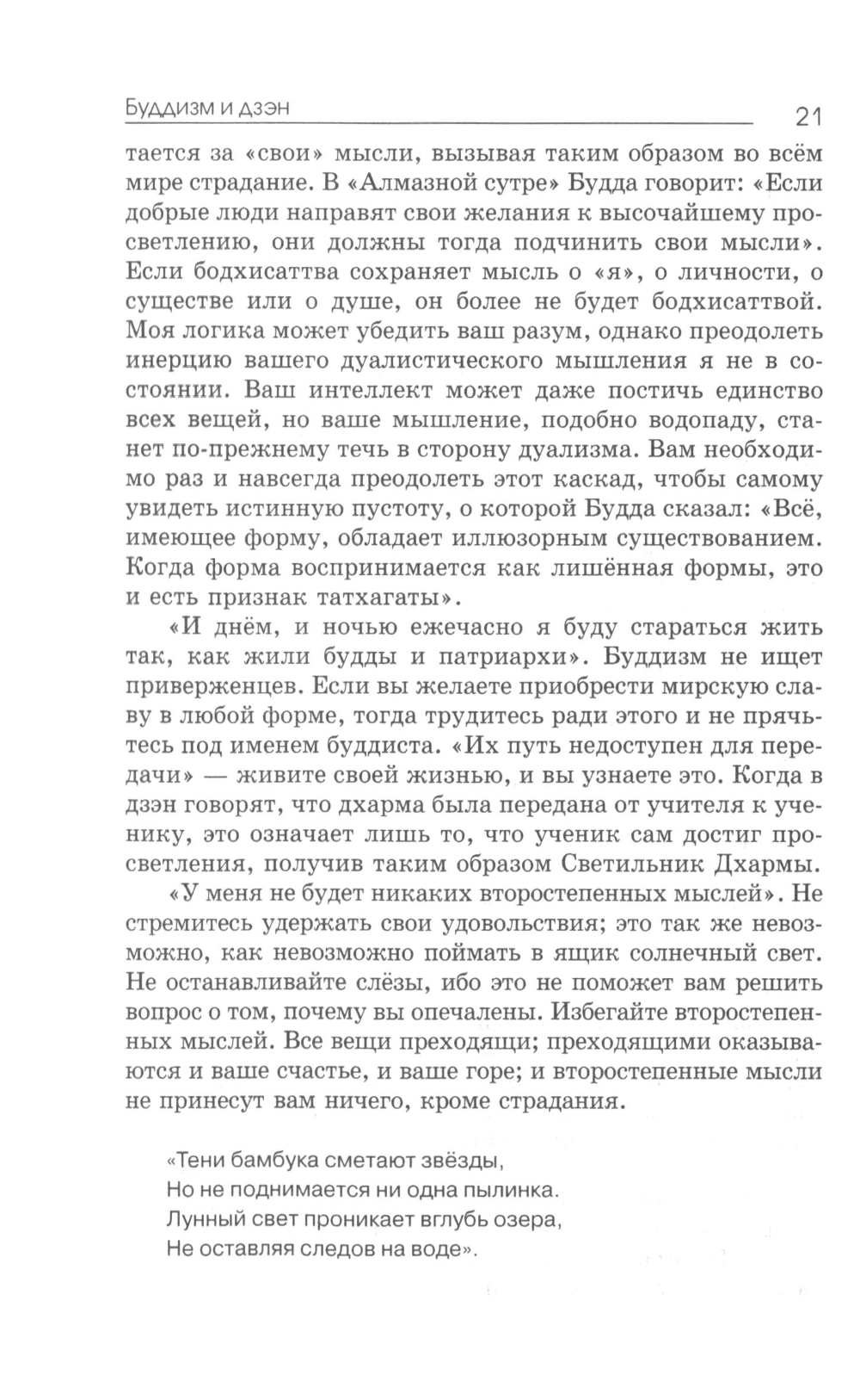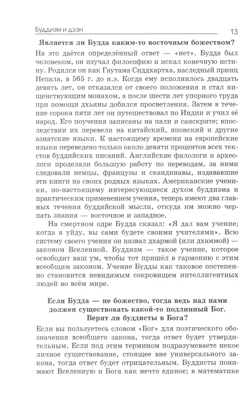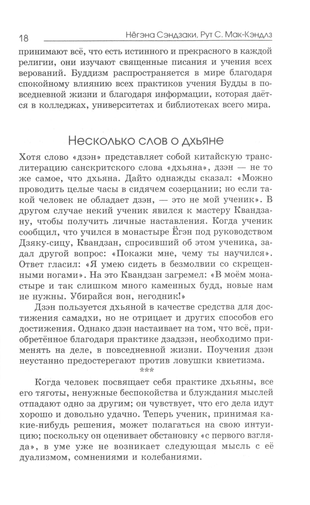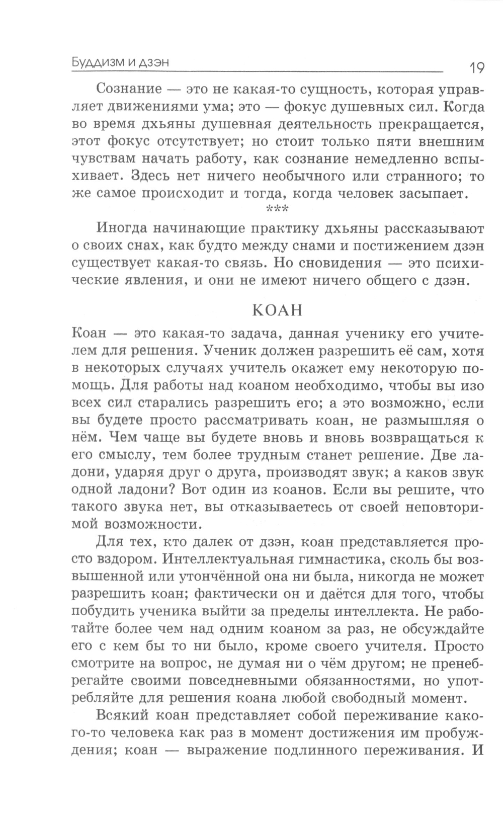 Дзэн вырос из буддизма и даосизма и в течение веков оставался единственной в своем роде формой буддизма. Дзэн охотно принимает все истинное в любой религии, признает последователей всех верований, достигших полного постижения; однако ему известно, что личность, религиозное воспитание которой основывалось на дуализме, несмотря на большую серьезность своих намерений, долго будет испытывать ненужные трудности, прежде чем достигнет просветления. Никто не в состоянии описать просветление другому человеку. Чтобы ощутить его, необходимо достичь его самостоятельно. Учитель в состоянии указать путь или помочь ученику своим руководством, но сама работа, как и достижение просветления, целиком зависит от ученика.| Издательство | Ирби |